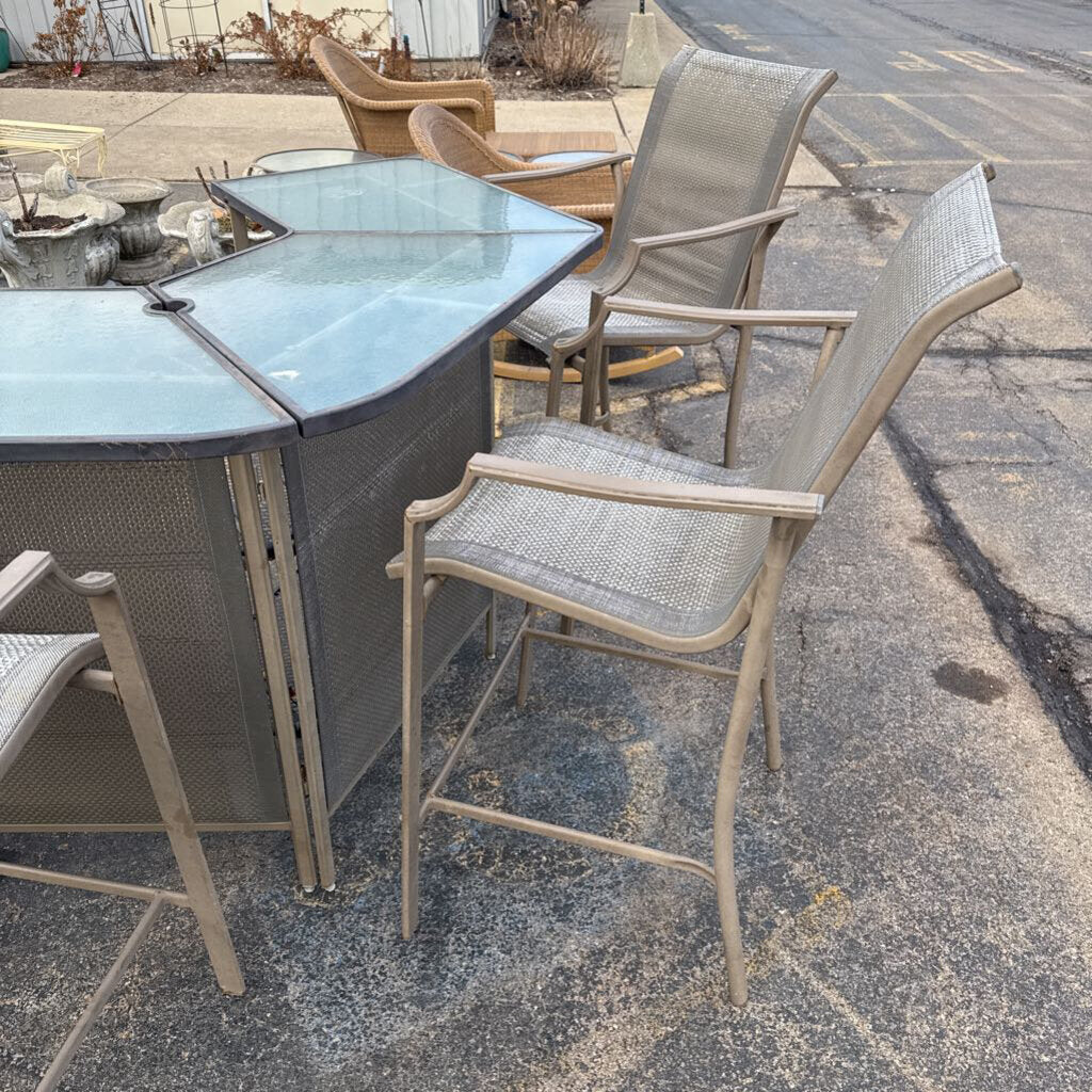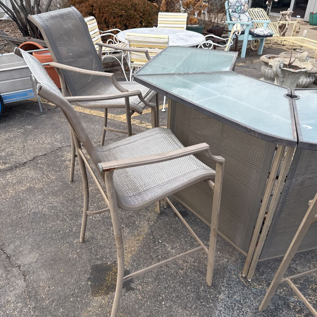 Metal/Glass Patio Bar (39x29x36) w/4 Chair Stools