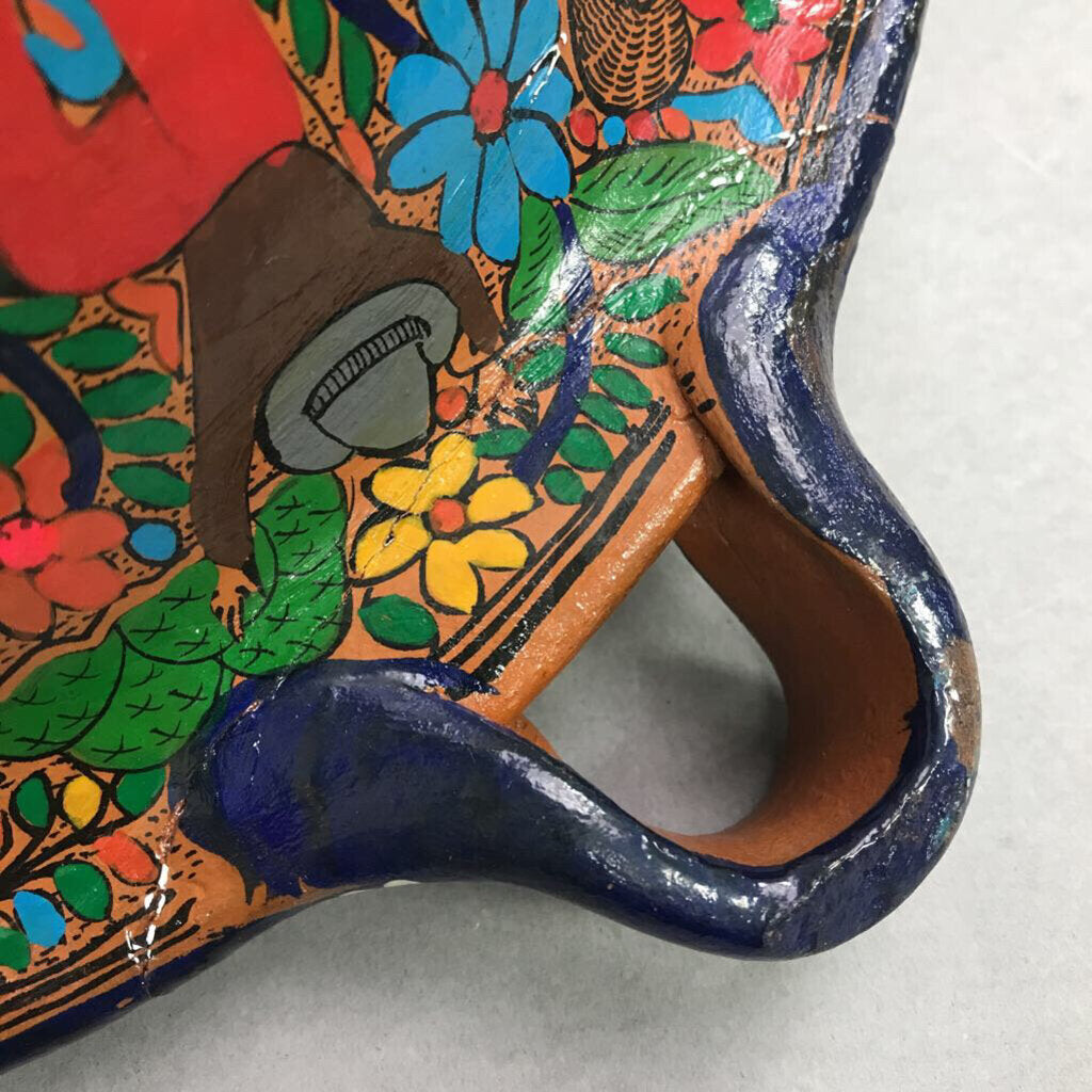 Hand Painted Mexican Folk Art Pottery Bowl with Handles (4x11)(As Is)