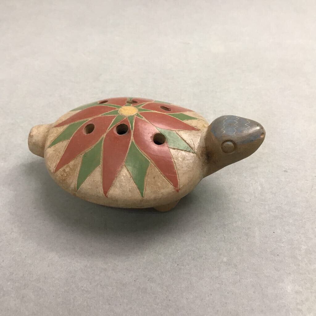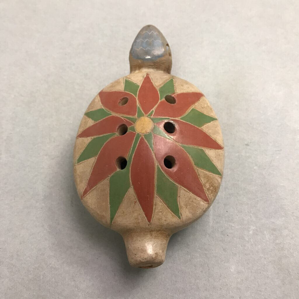 Mexican Clay Pottery Hand Painted Turtle Ocarina Whistle Flute (2x6)
