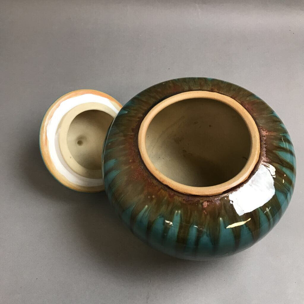Pottery Stoneware Blue & Brown Glazed Lidded Jar (8")