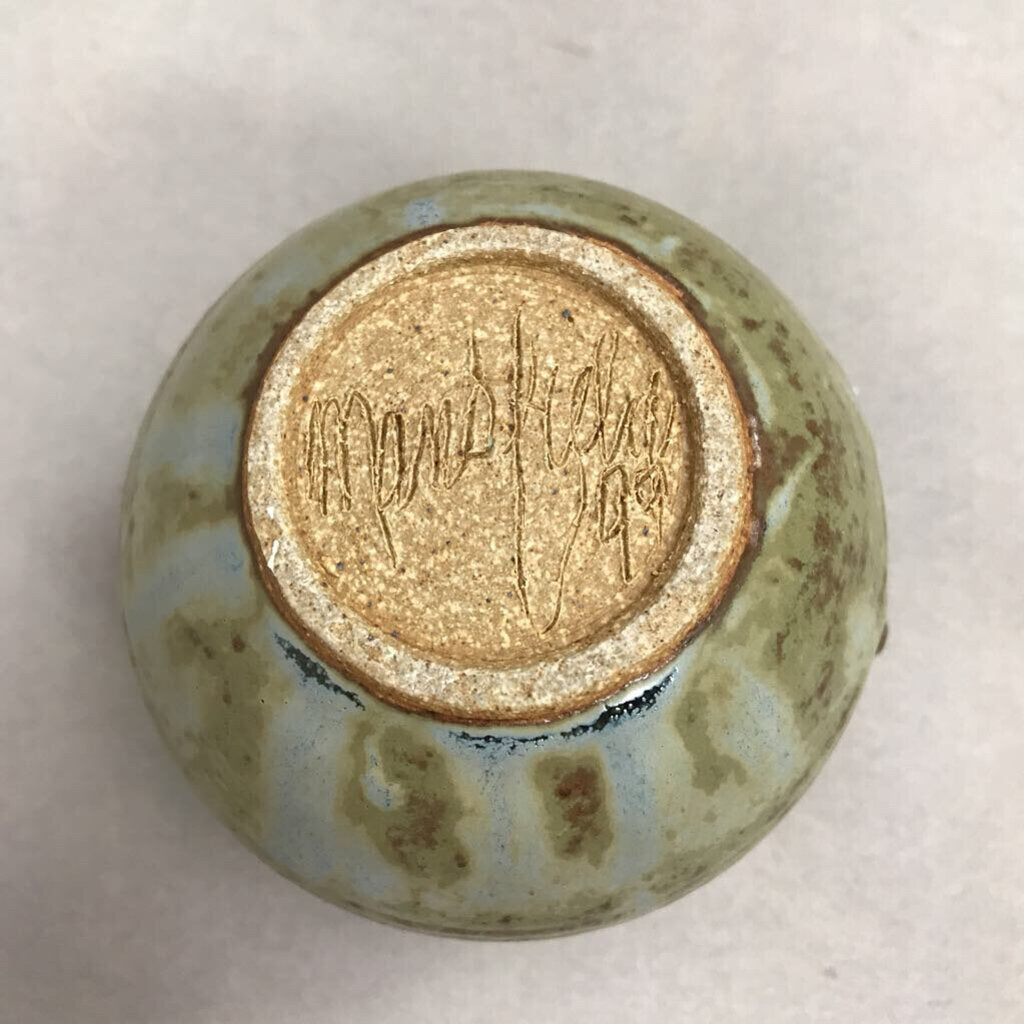 Studio Pottery Blue Brown w/Handles Signed (4")