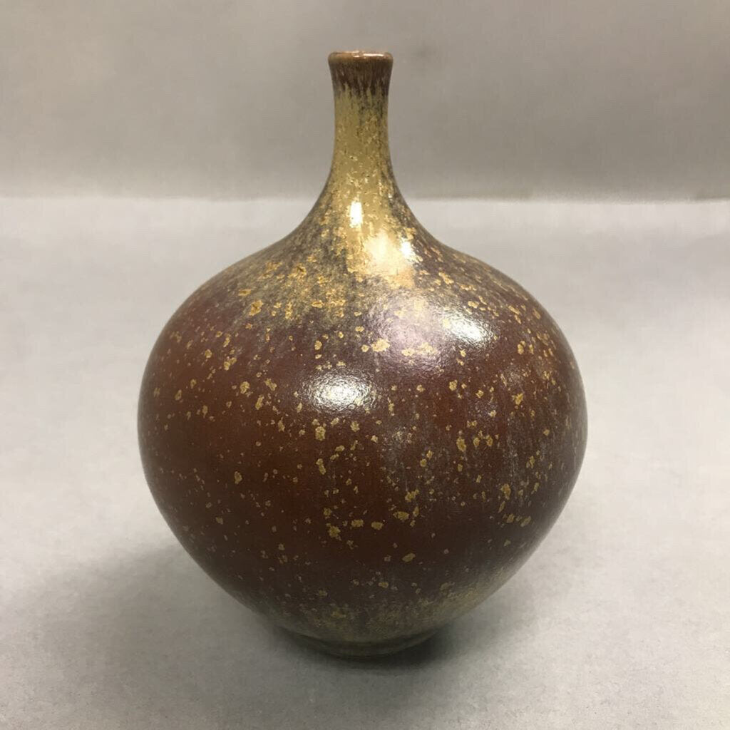 Studio Pottery Brown Glazed Vase W/ Gold Specks (7")