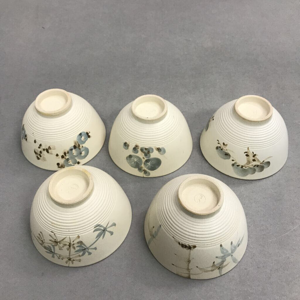 Vintage Signed Pottery Bowl Set of 5 with Blue Flowers (2x4)