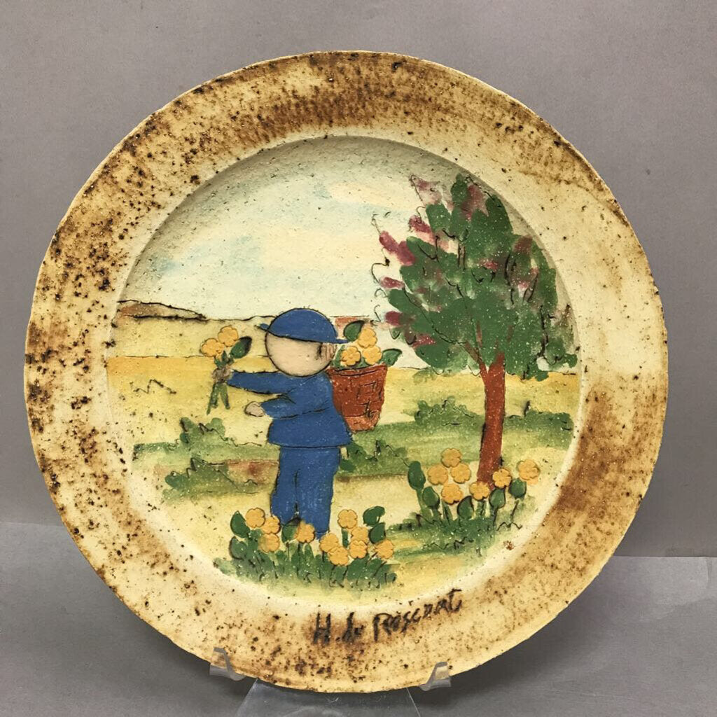 Vintage Studio Art Pottery Wall Plate by Hubert Du Roscoat (12")