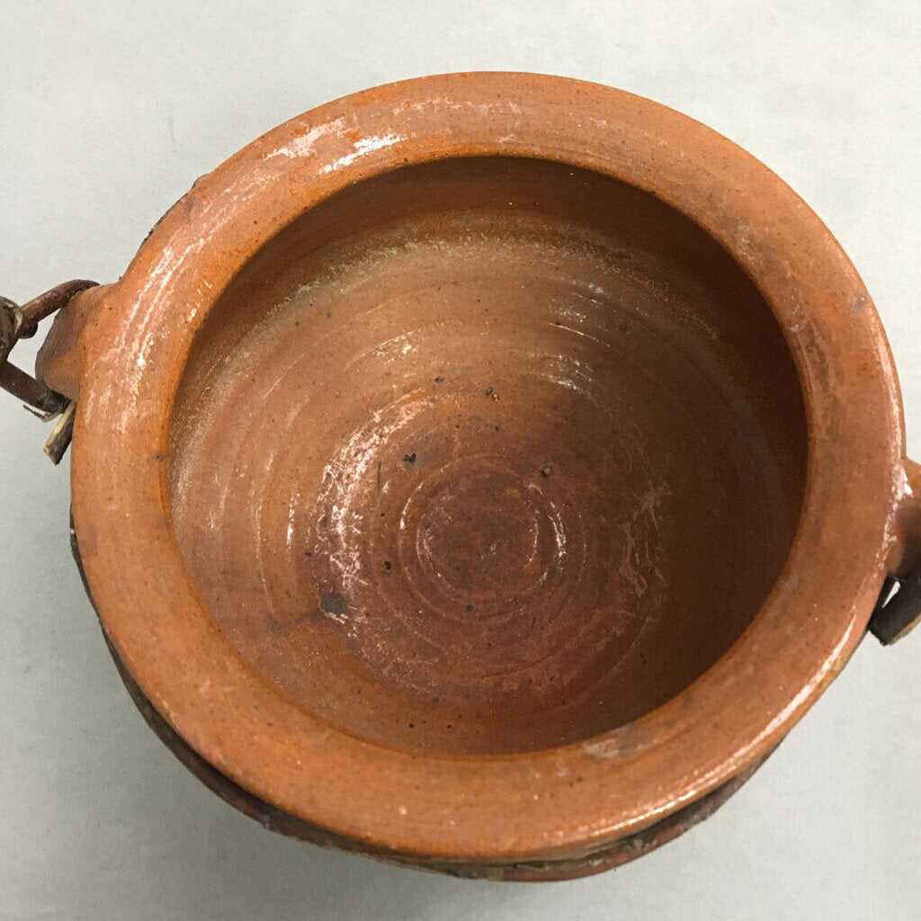 Vintage Twisted Wicker Handled Terracotta Pottery Basket (14")
