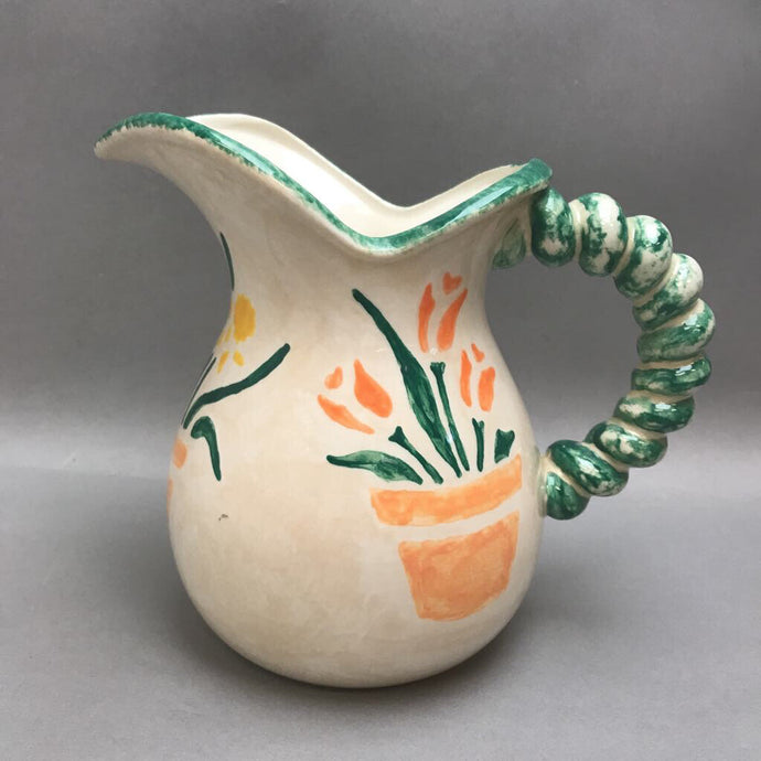 Pottery White with Green Pitcher (8")