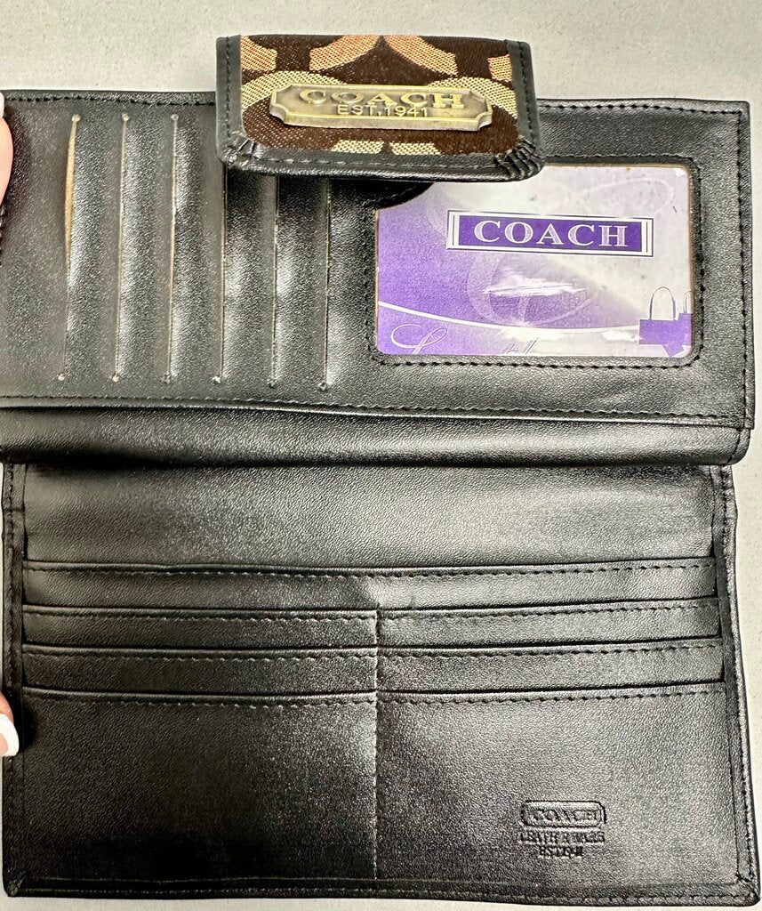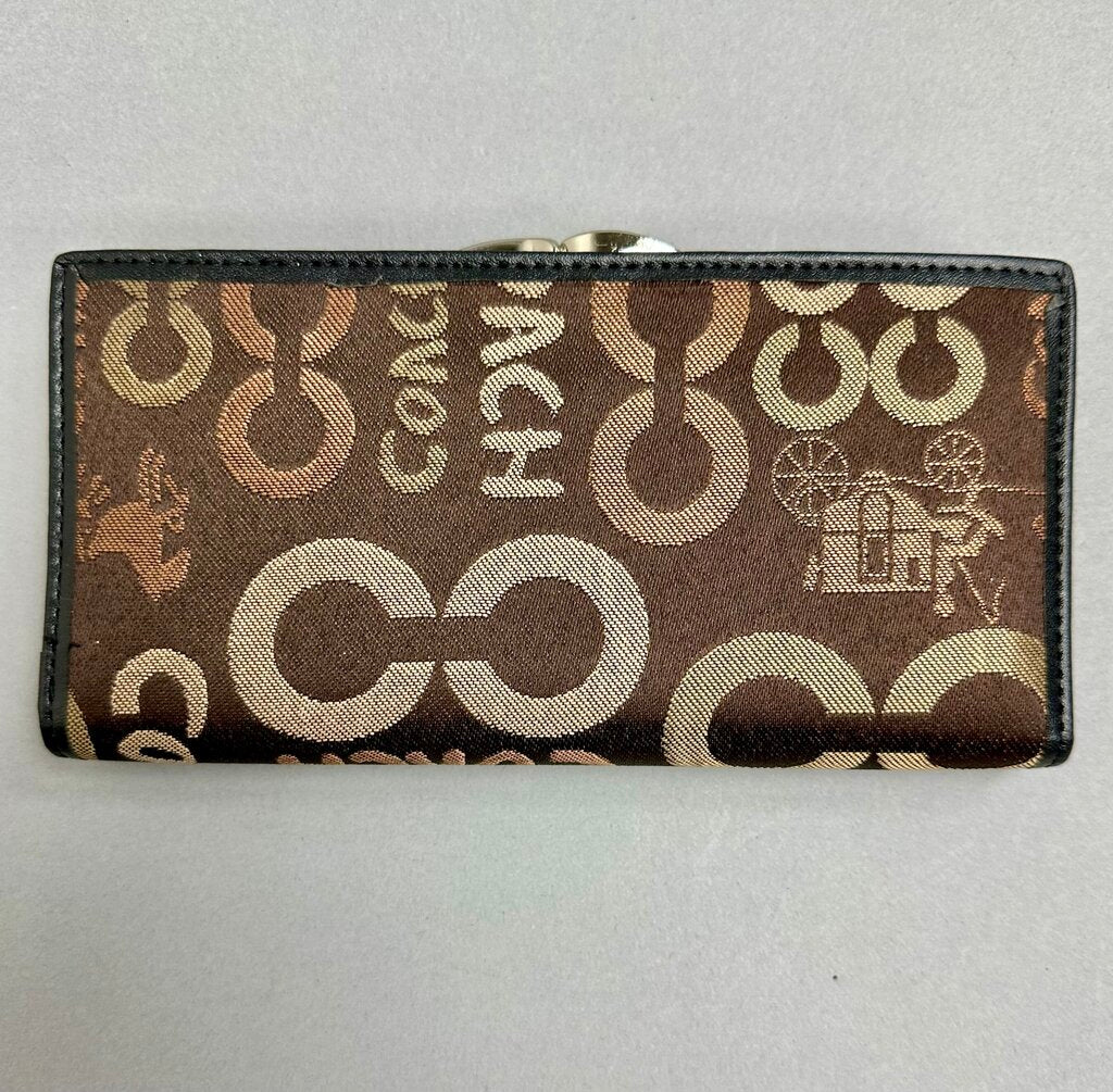 Coach Dark Brown Signature Print Canvas Long Wallet Clutch NWOT (4x7.5")