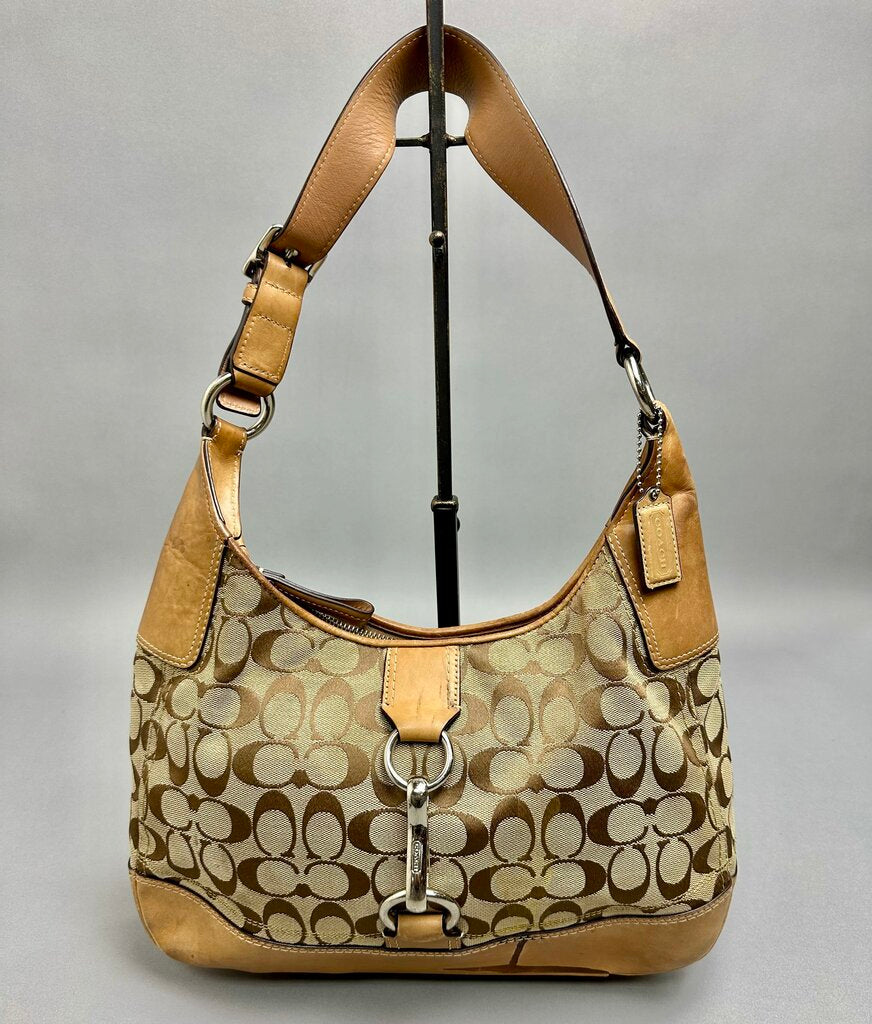 Coach Hamptons Hobo Signature Logo Canvas Leather Trim Purse As-Is (12x14x3")