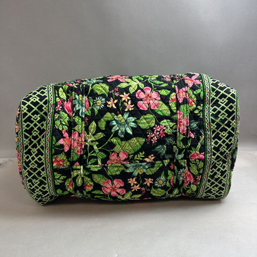 Vera Bradley Black Pink Botanica Print Quilted Large Duffel Bag NWT (12x22x12")