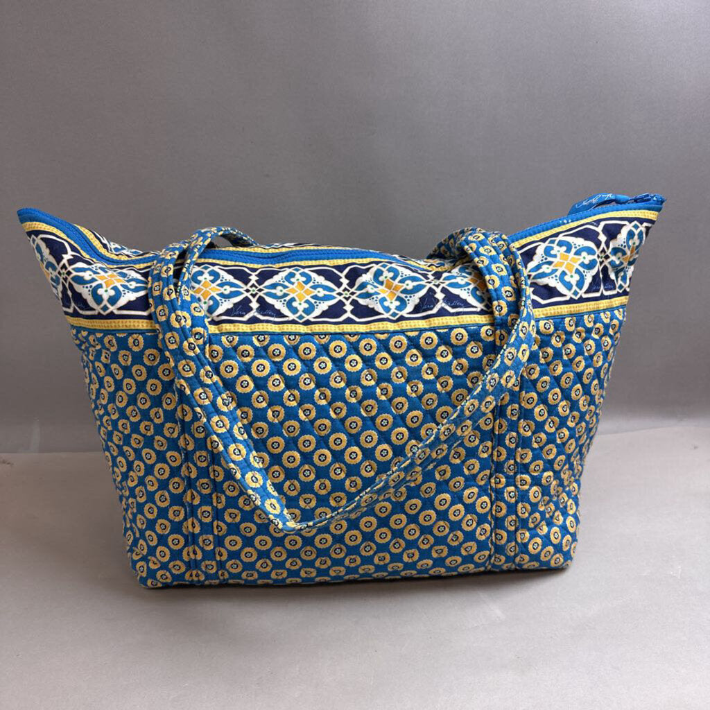 Vera Bradley Blue Yellow Riviera Print Quilted Large Zip Tote Bag Purse (14x22x8")