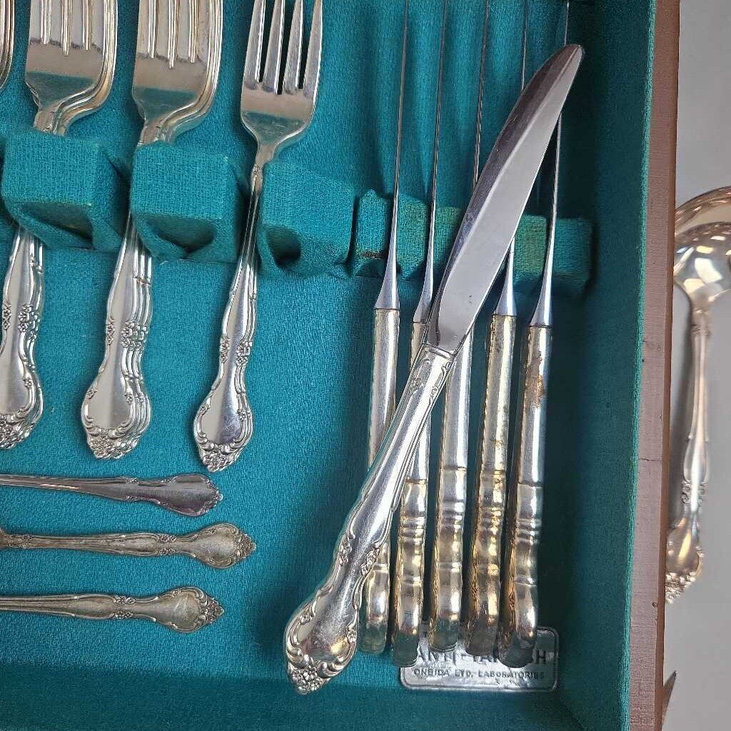 Oneida 'Affection' Silverplate Flatware Set w/ Chest (5x16x11)
