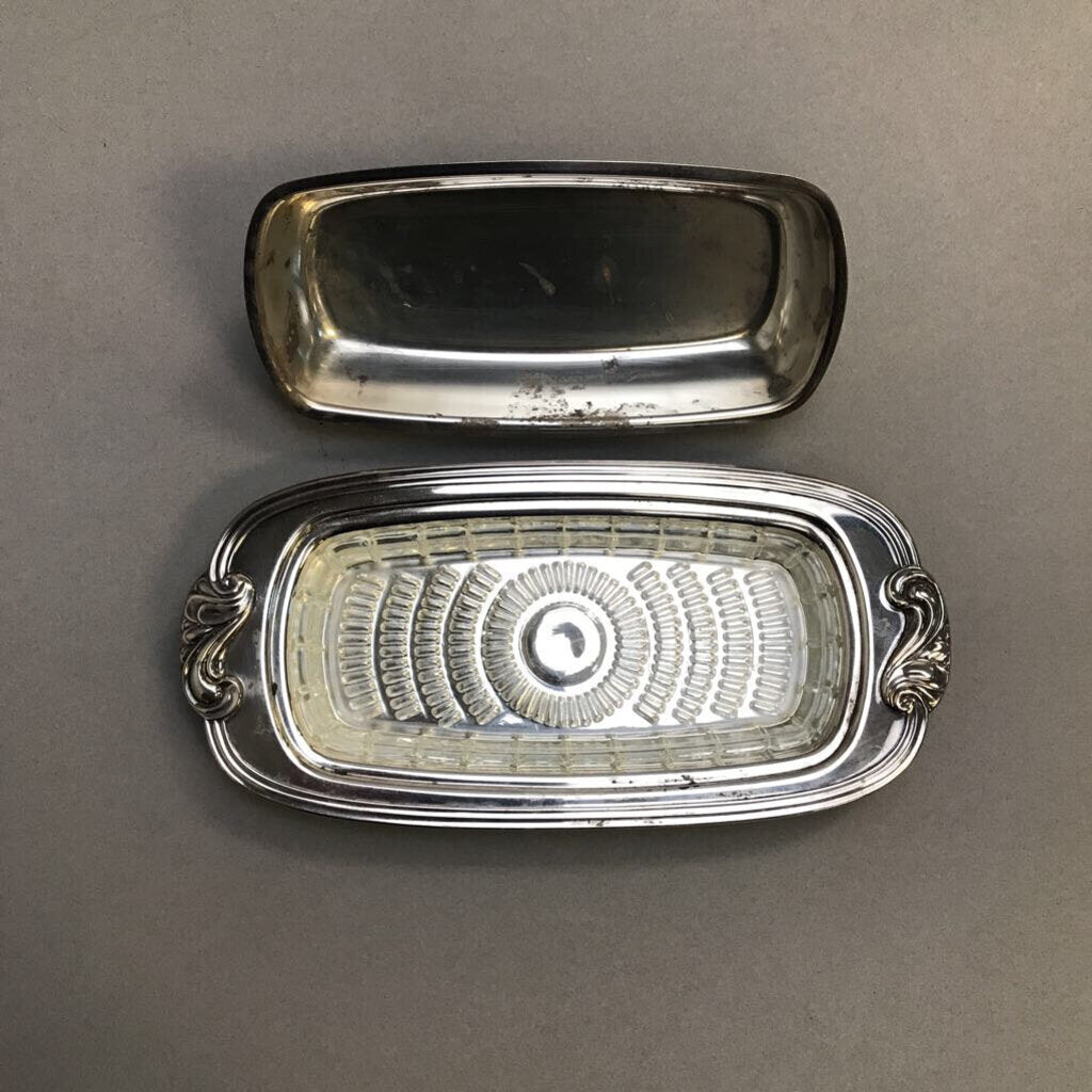 Silverplate / Glass Butter Dish (8.5x3x4)