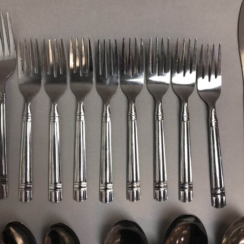 Includes 8 Dinner Forks; 8 Salad Forks; 8 Dinner Knives; 16 Teaspoons; 5 Soup Spoons