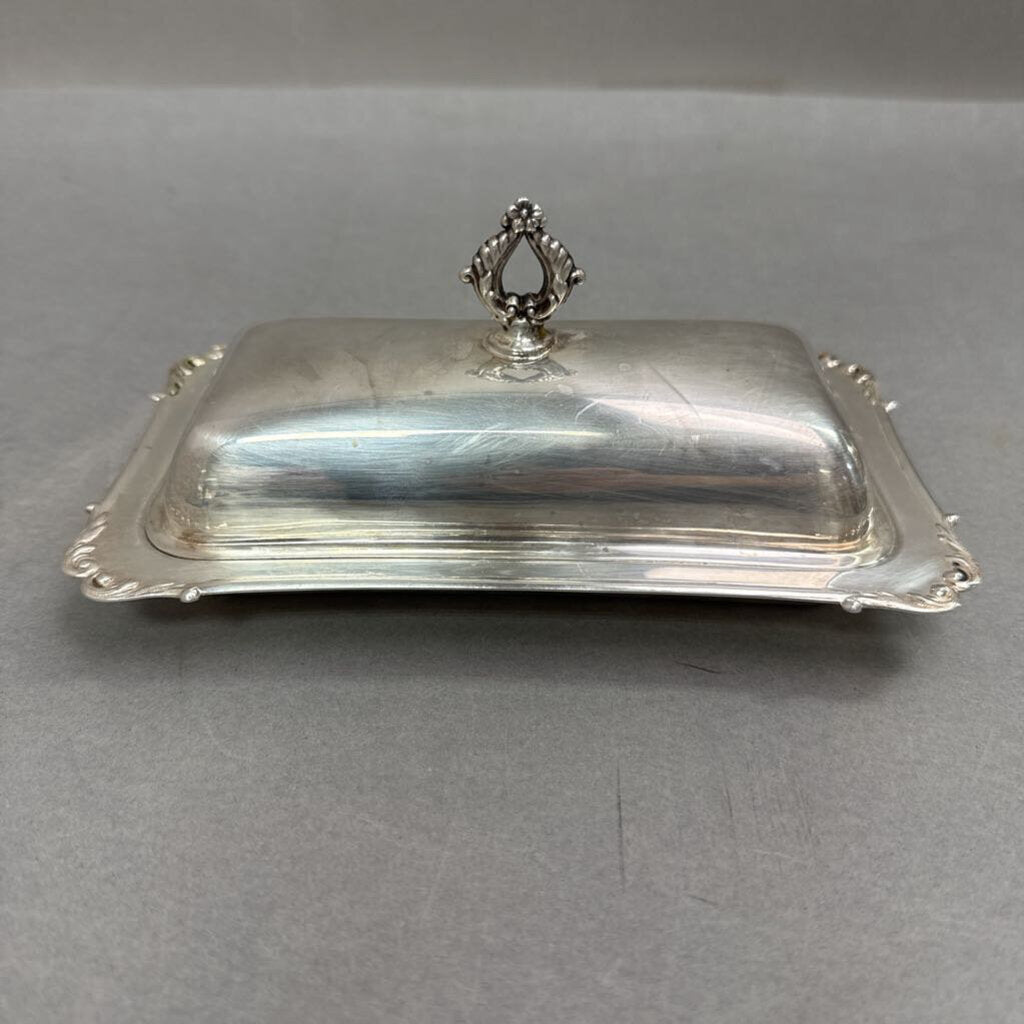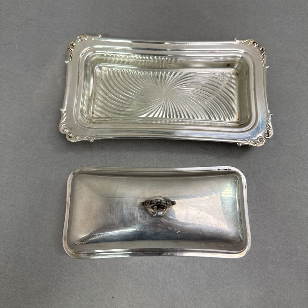 Vintage Crescent Silverware Co. Silverplate Butter Dish W/ Glass Insert (3x8x4)