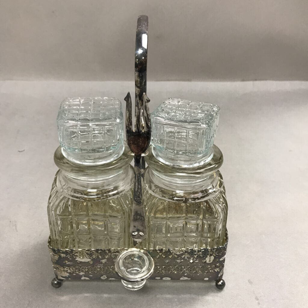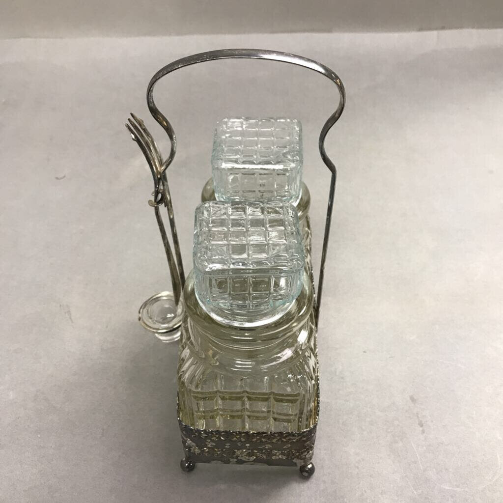 Vintage Sheffield England Pickle/Olive Jar's W/ Silverplate Caddy (9x7x5) 5pcs