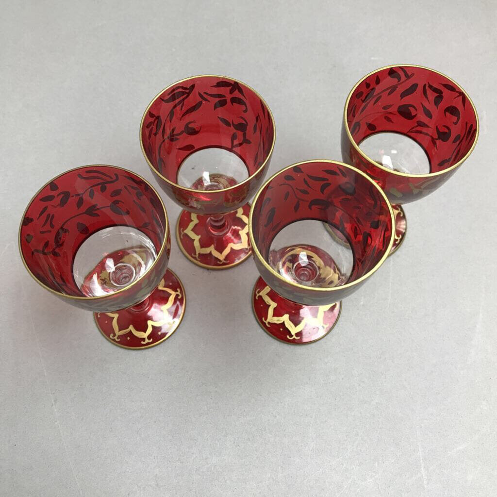 Vintage Set of 4 Egermann Czechoslovakia Sherry Glasses Hand-Painted 24k Gold Stemware (4")