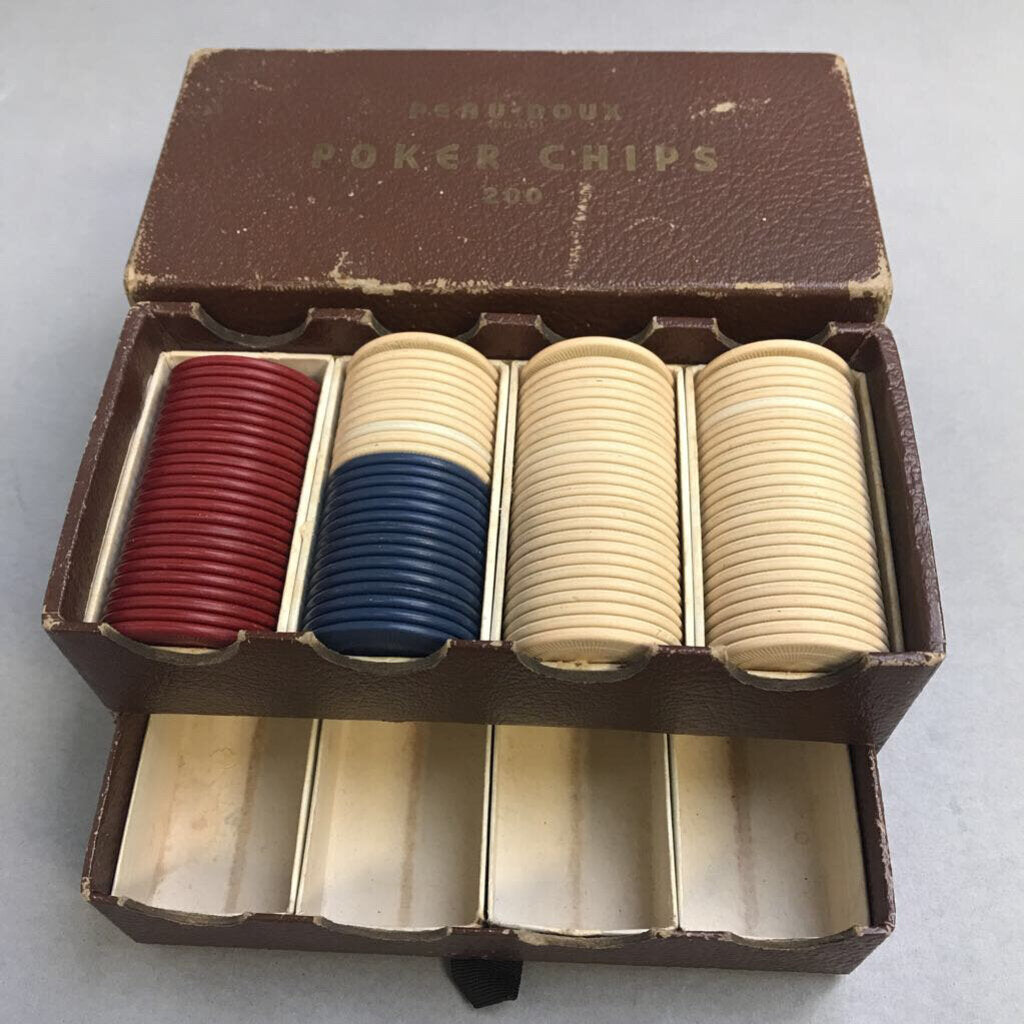 Box Set of 100 Vintage Clay Peau Doux (PO-DO) Boston Terrier Poker Chips (As Is)