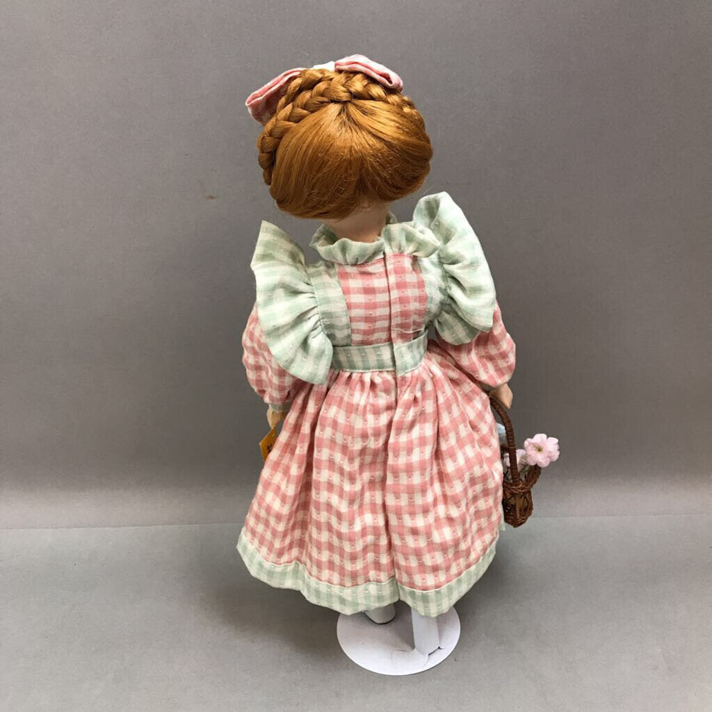 Porcelain Doll, Pink & Green w/ Flower Basket (17")
