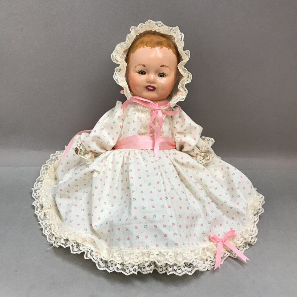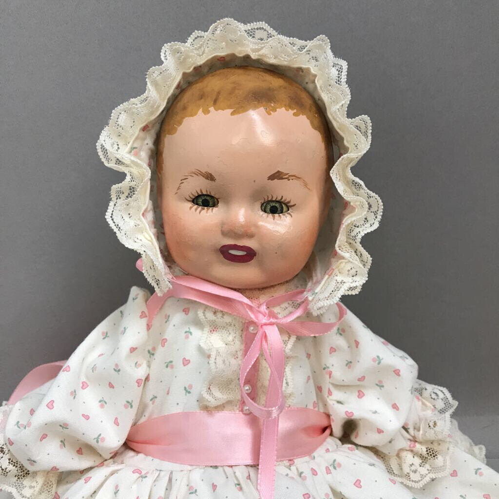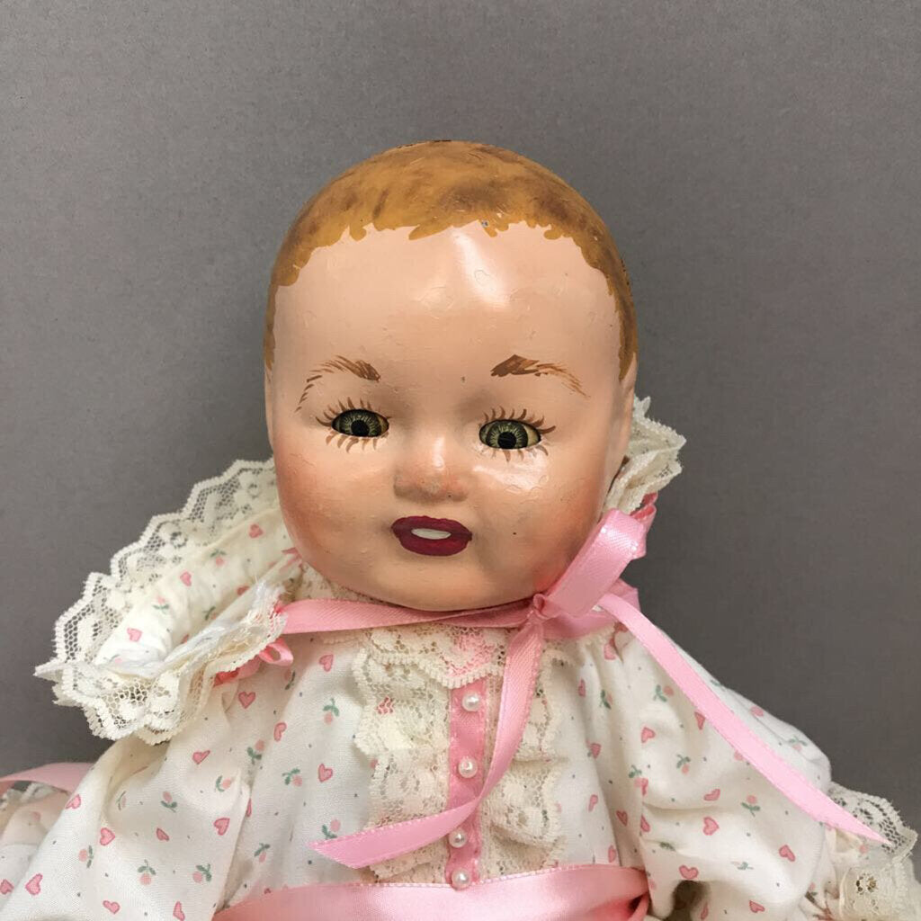 Vintage Composition Baby Doll, Pink Heart Dress (15")
