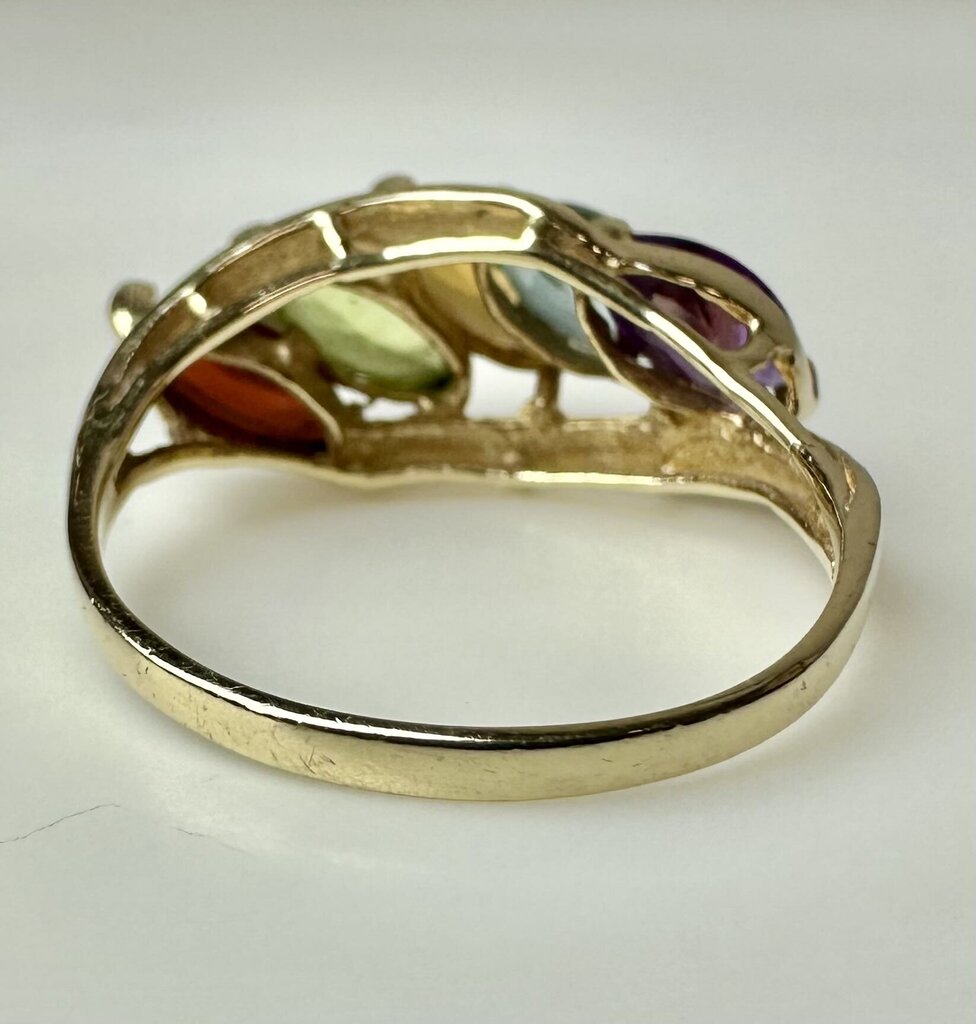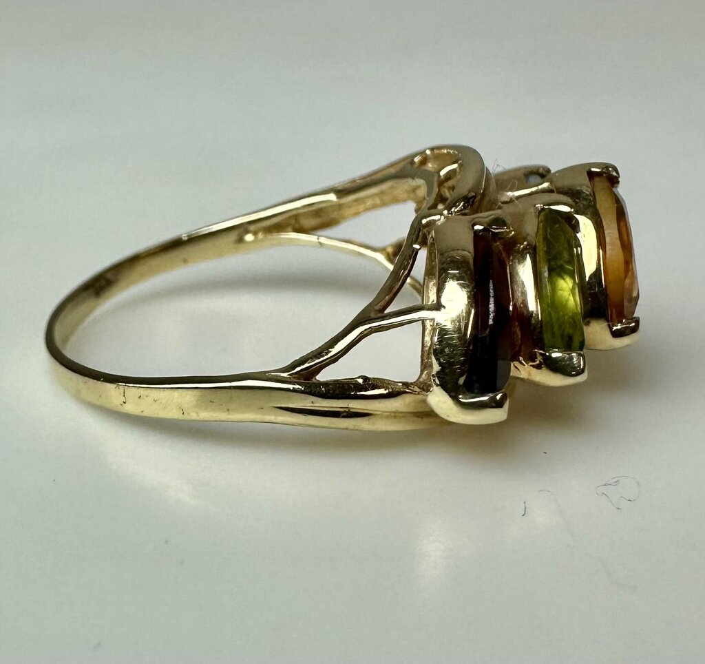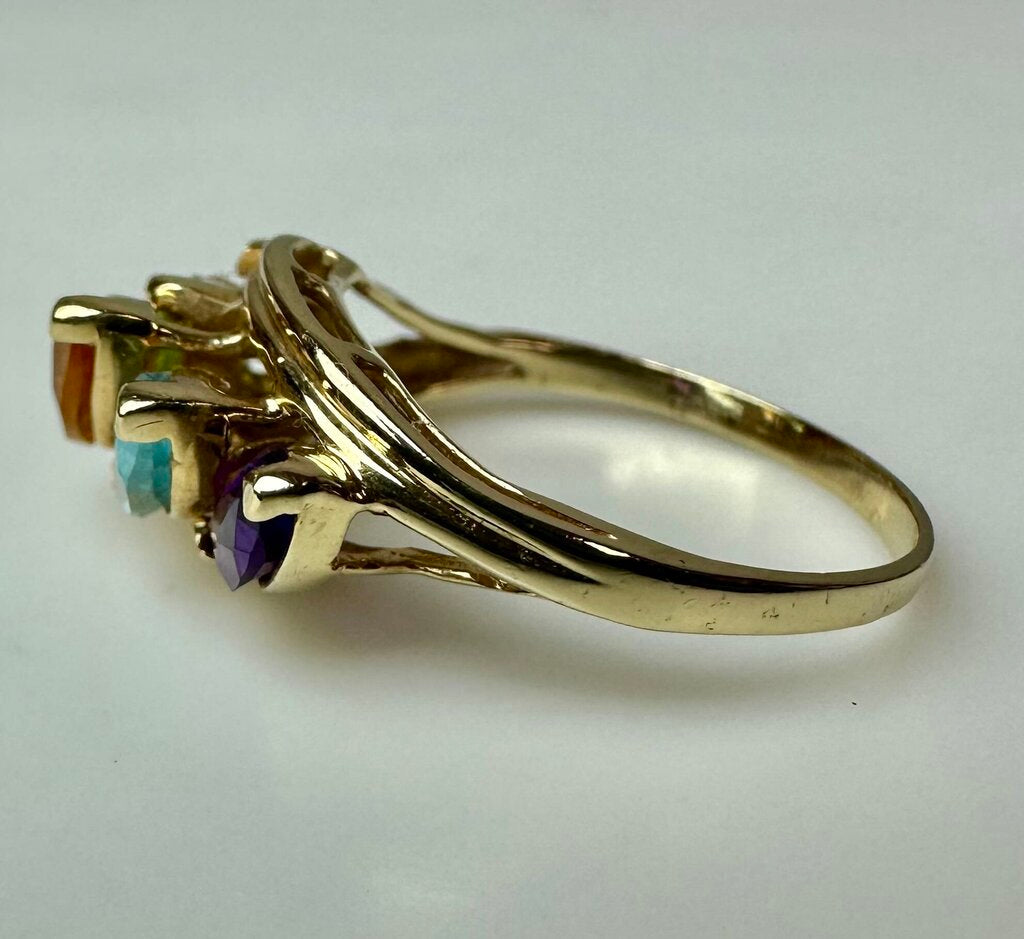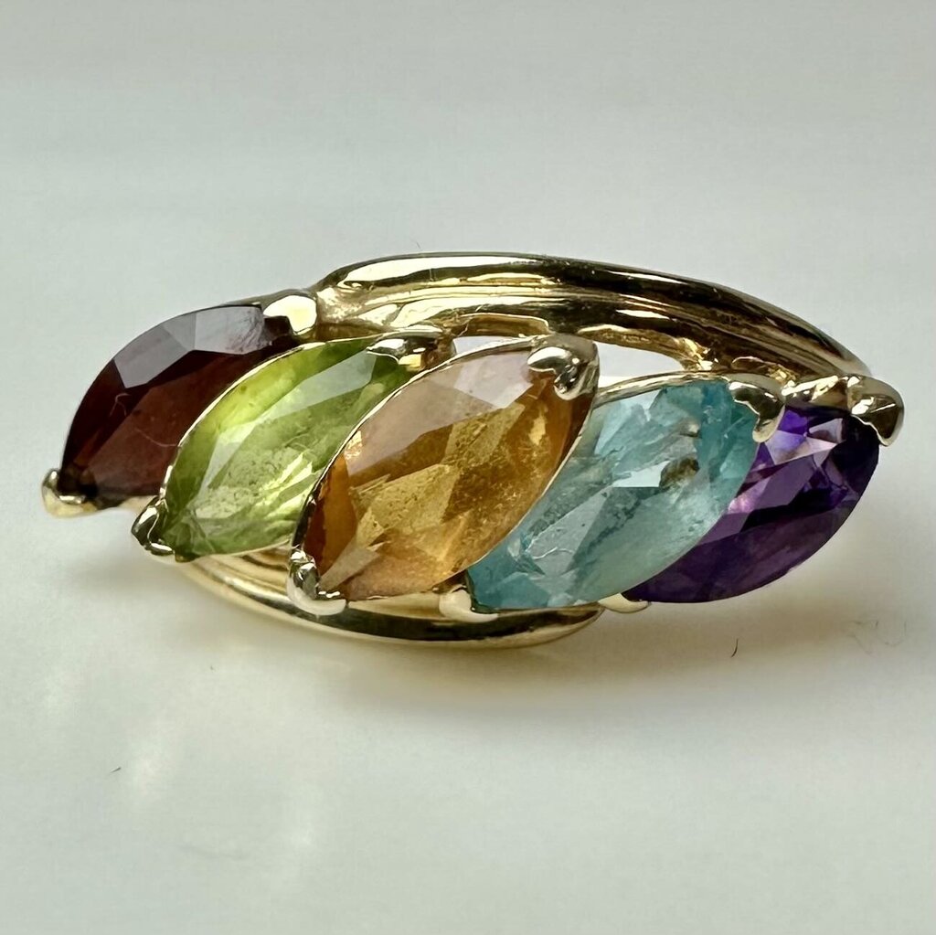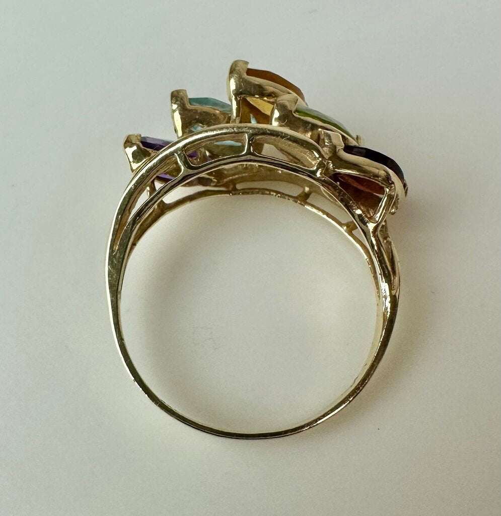 14K Gold Amethyst Topaz Citrine Garnet Peridot Ring sz 7.75 (3.6g)