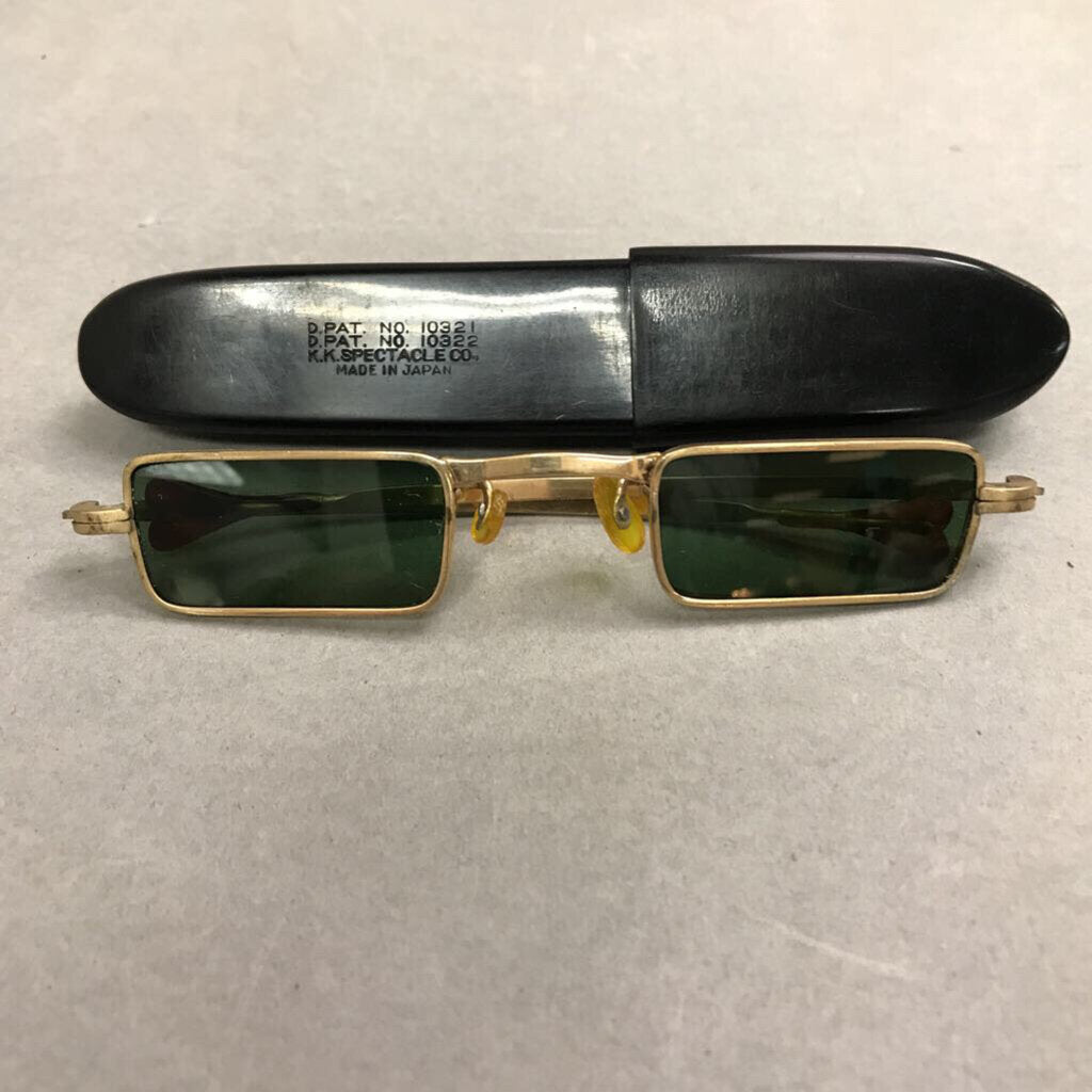 1960s John Lennon Green Sunglasses W/Case K.K. Spectacle Co.