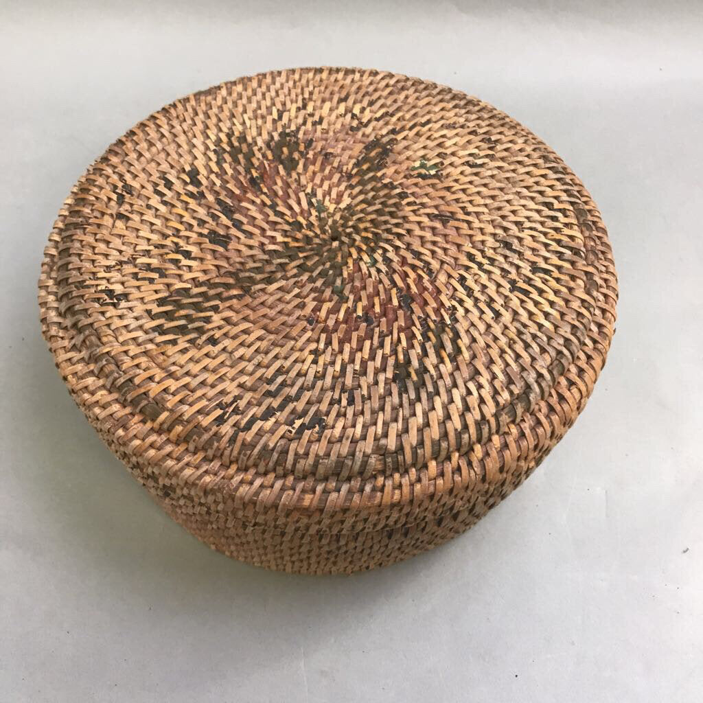 • Load image into Gallery viewer, Antique Fine Woven Lidded Basket (4x8)