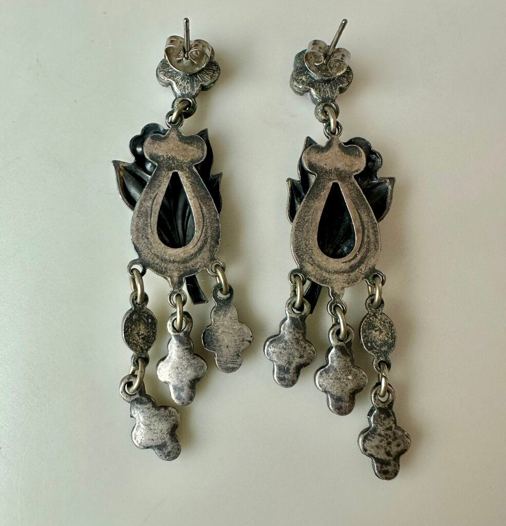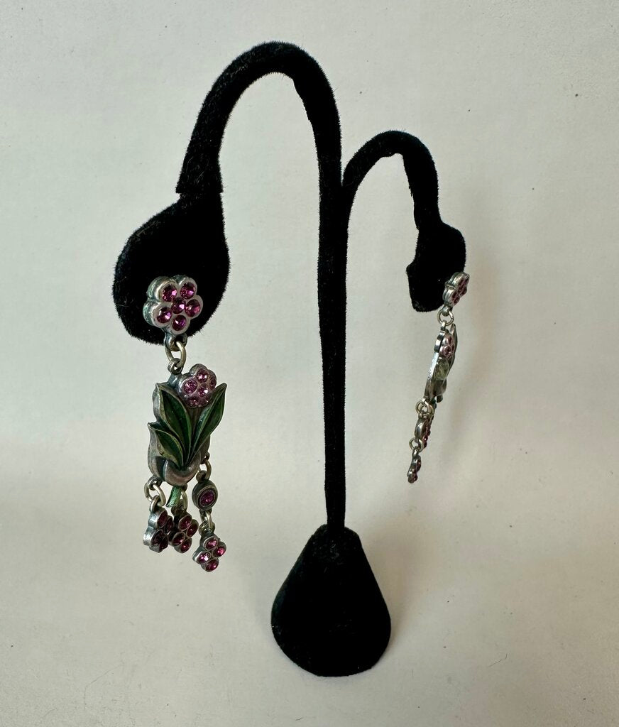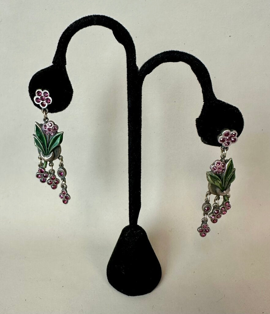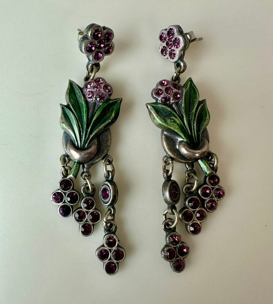 Banana Bob Silverox Flower Purple Rhinestone Chandelier Earrings (2.5")
