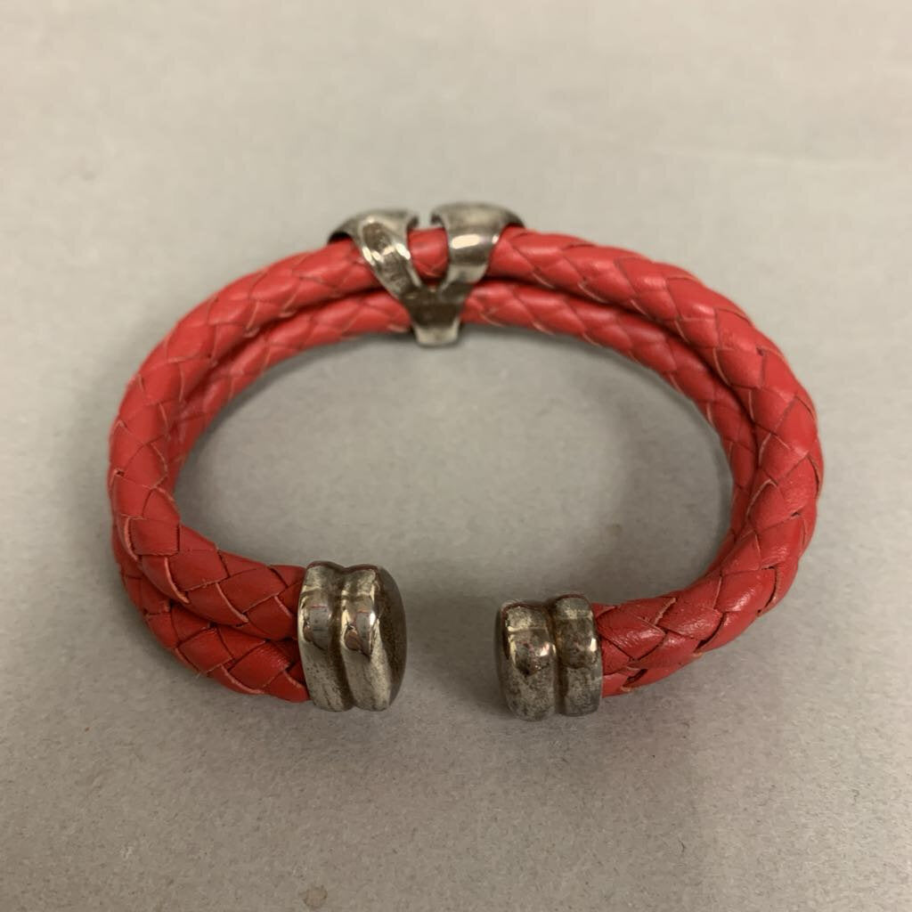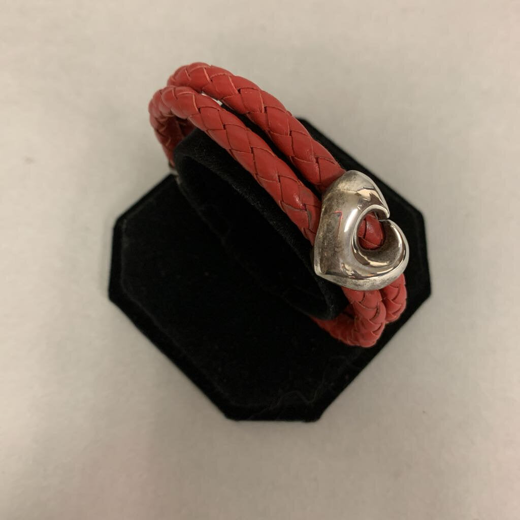 Espo Sterling Heart on Red Braided Leather Wrapped Bracelet