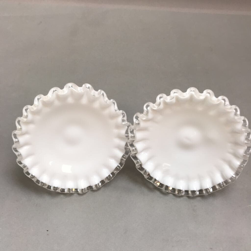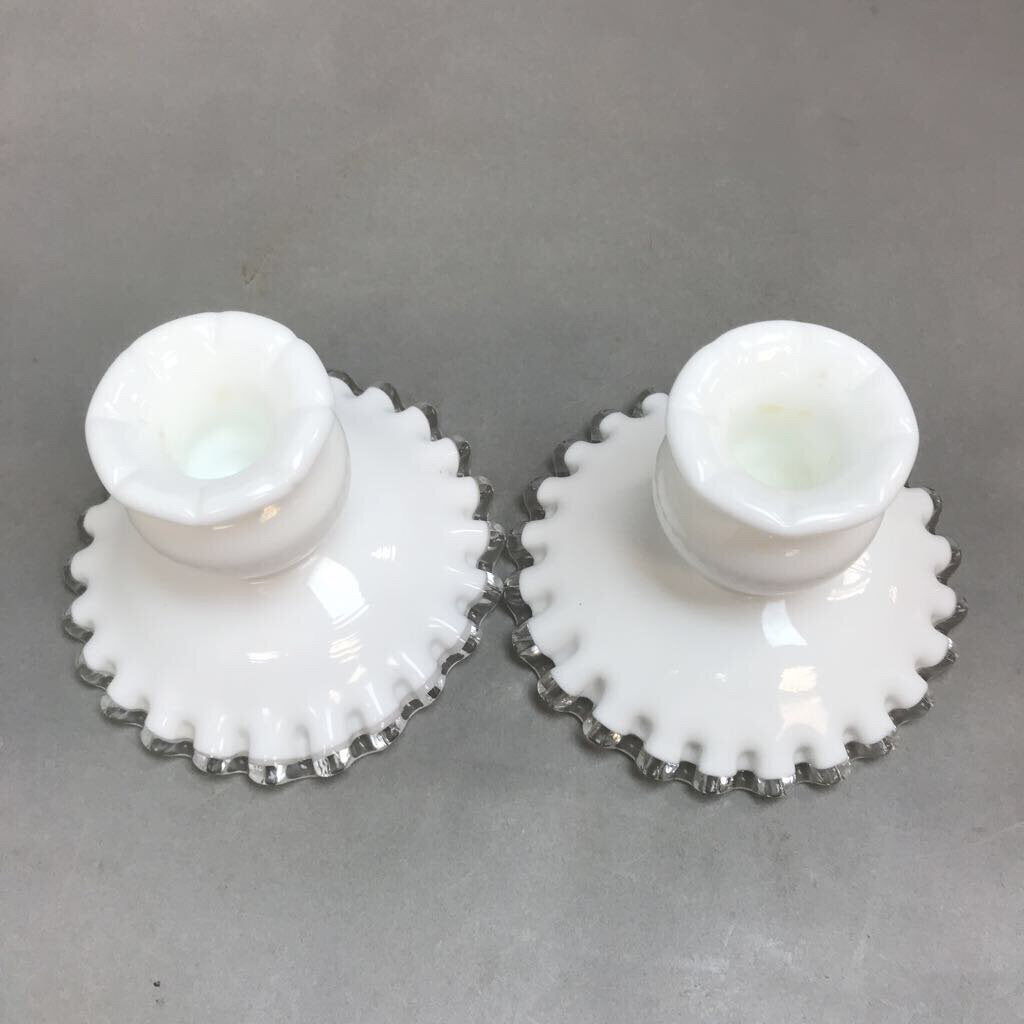 Fenton Milk Glass Silver Crest Single Lite Candlesticks (3.5")