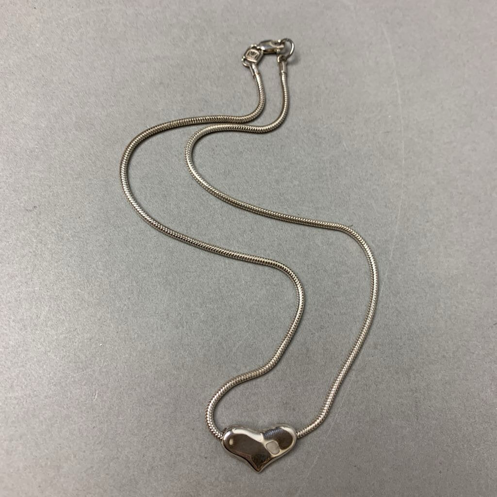 Fine Silver Puffy Heart Slide Pendant on 16" Snake Chain