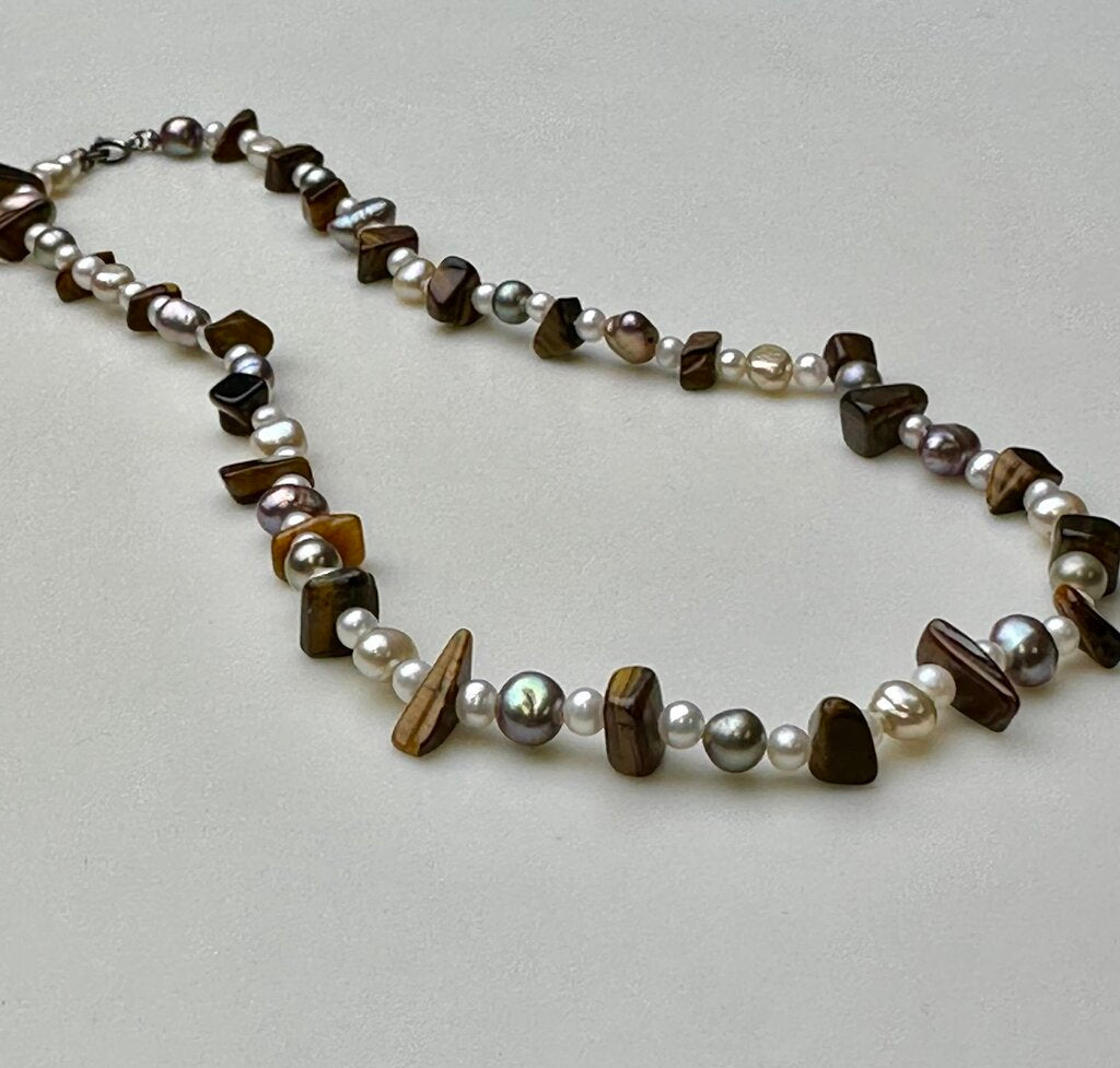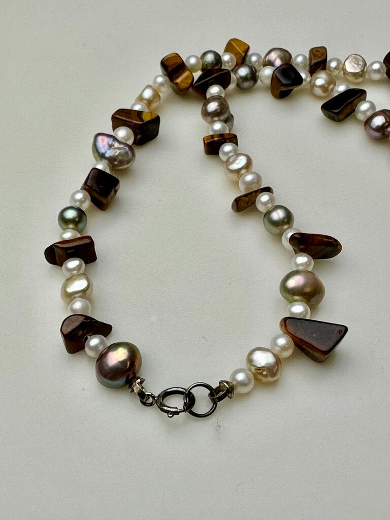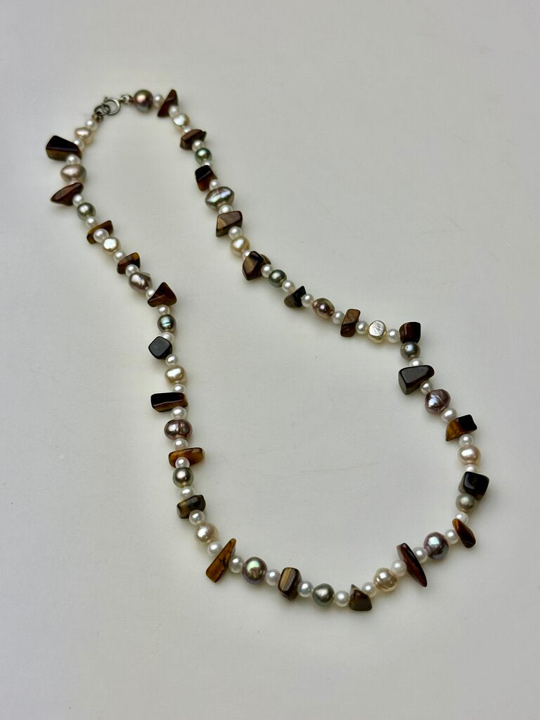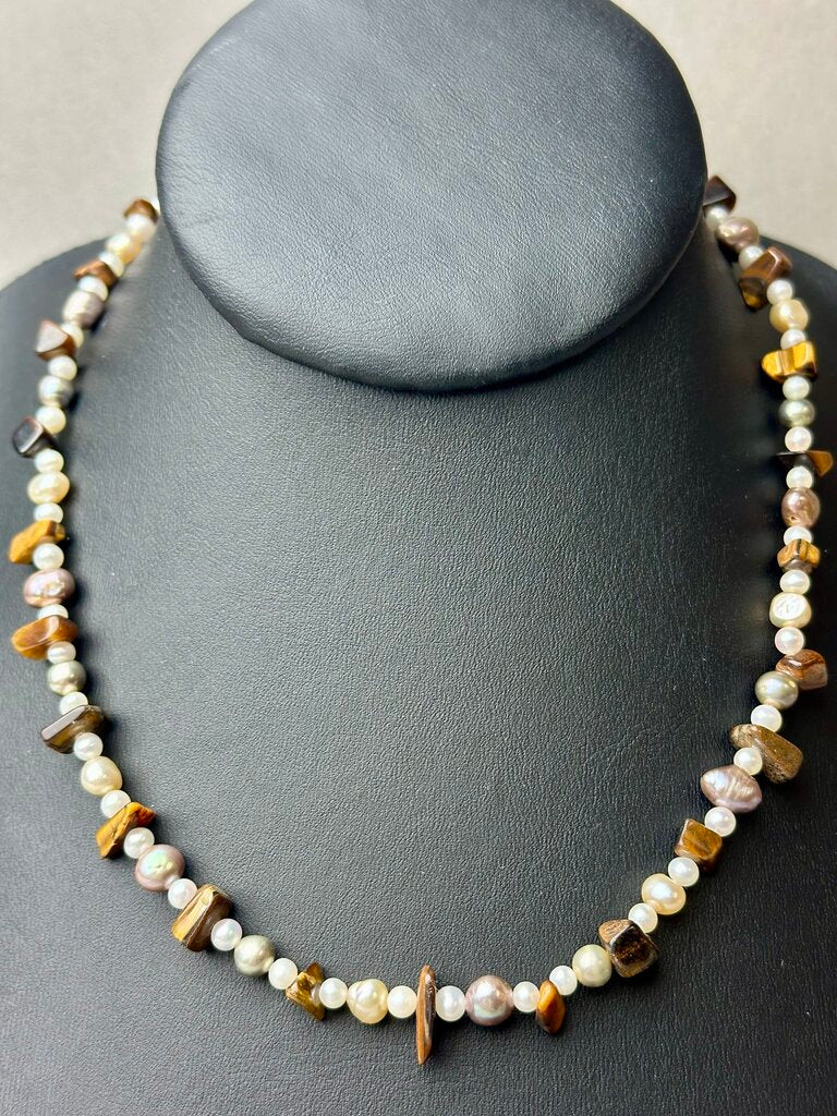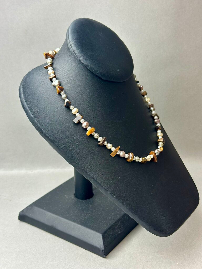 Freshwater Pearl Tigers Eye Beaded 16" Necklace