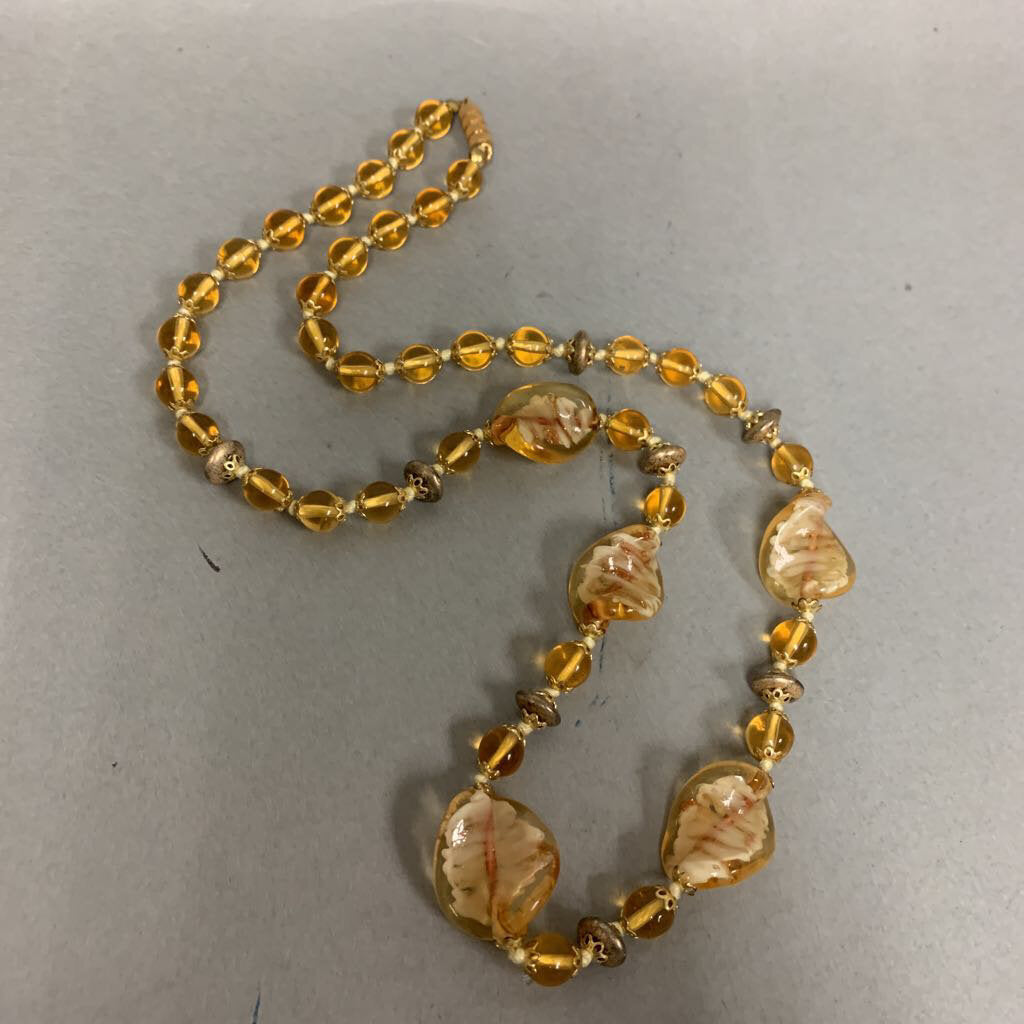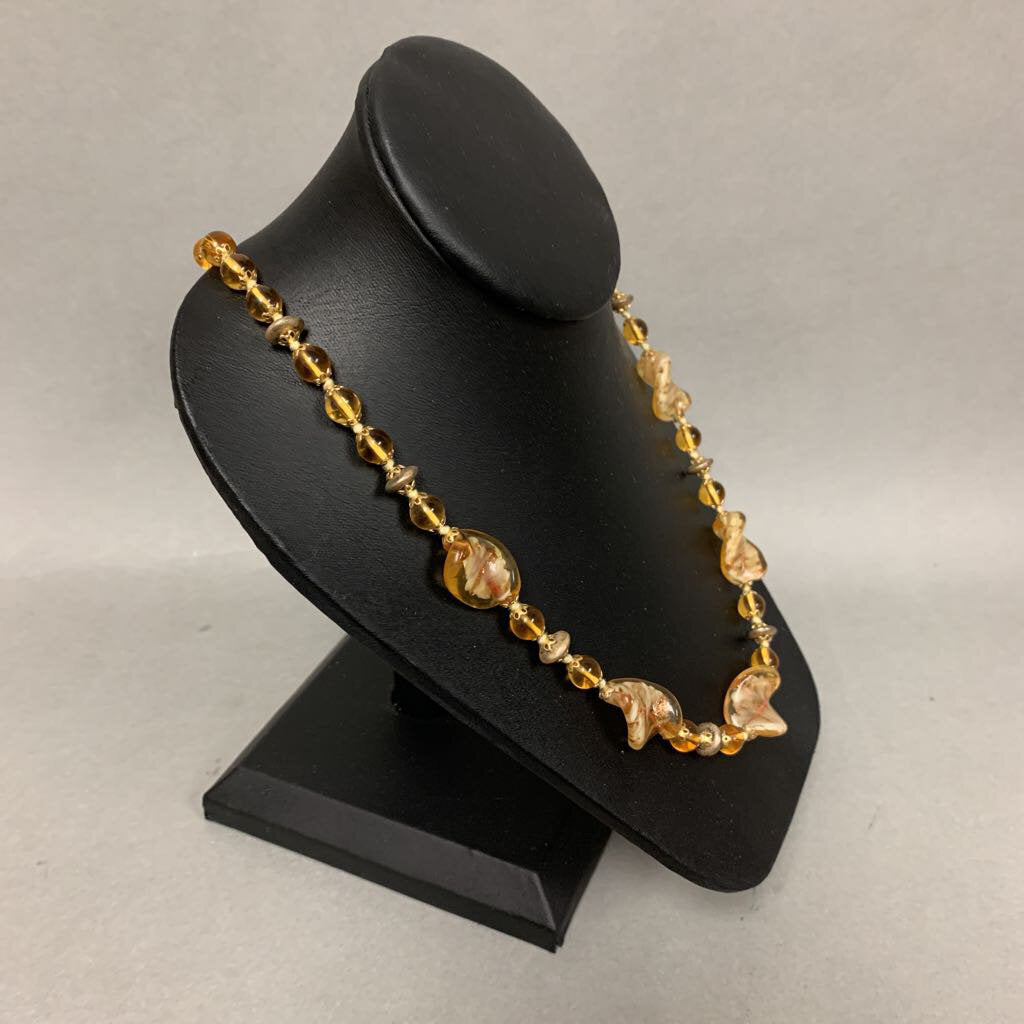 Gold Art Glass Beaded Necklace (24")