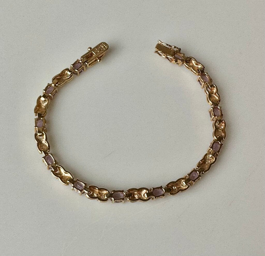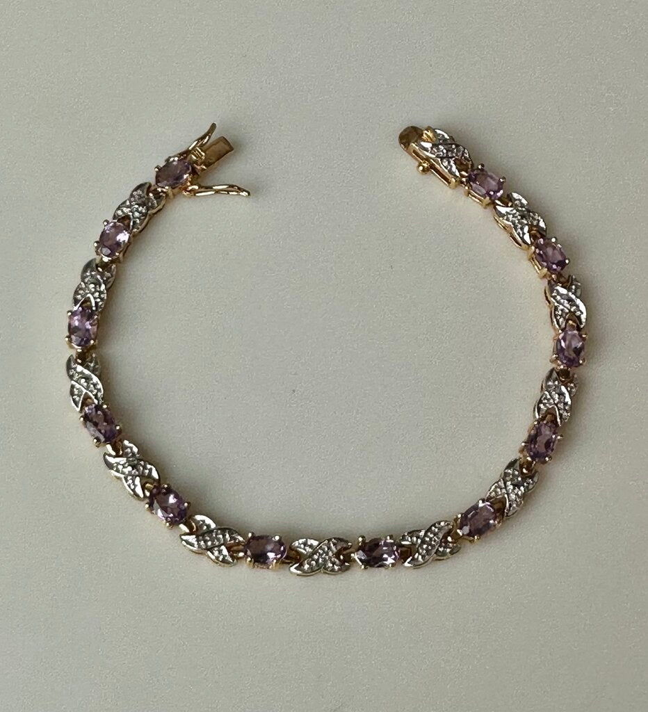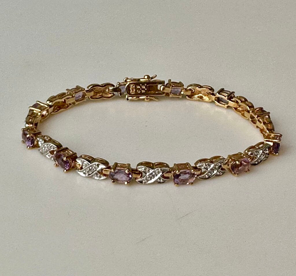 • Load image into Gallery viewer, Gold Vermeil Sterling Amethyst XO Link Tennis Bracelet (7.5")