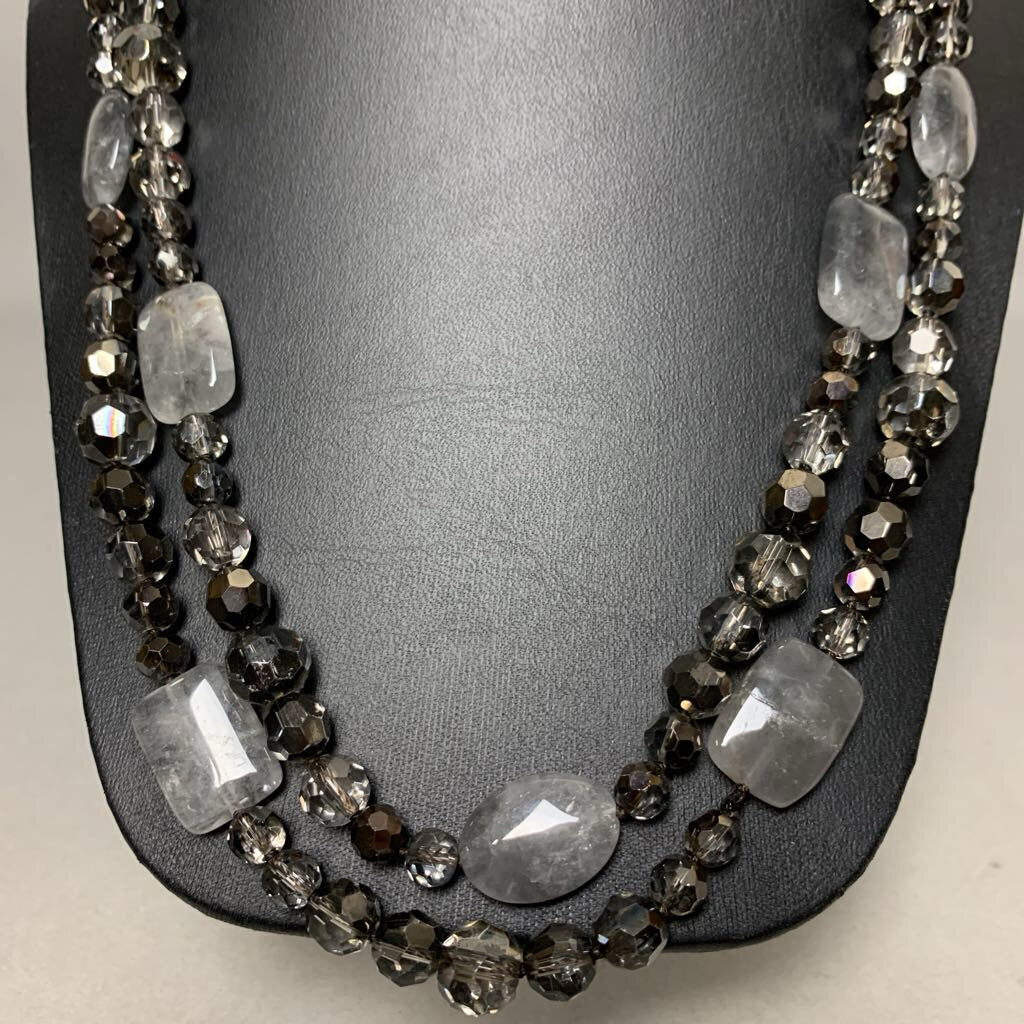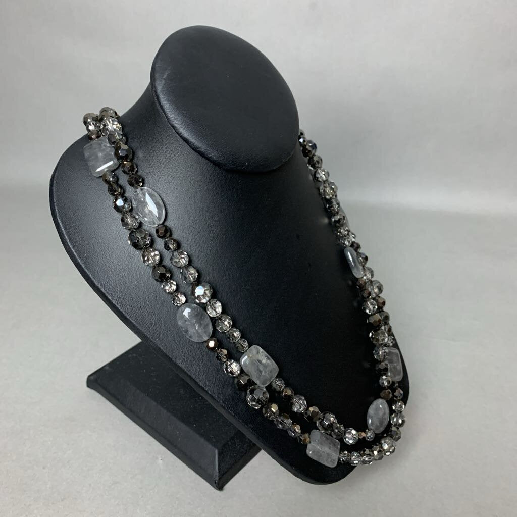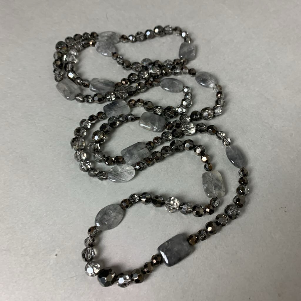 Gray Faceted Crystal Rutilated Quartz Beaded Long Necklace (52")
