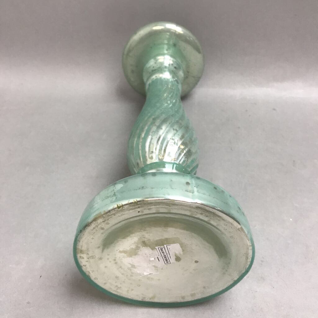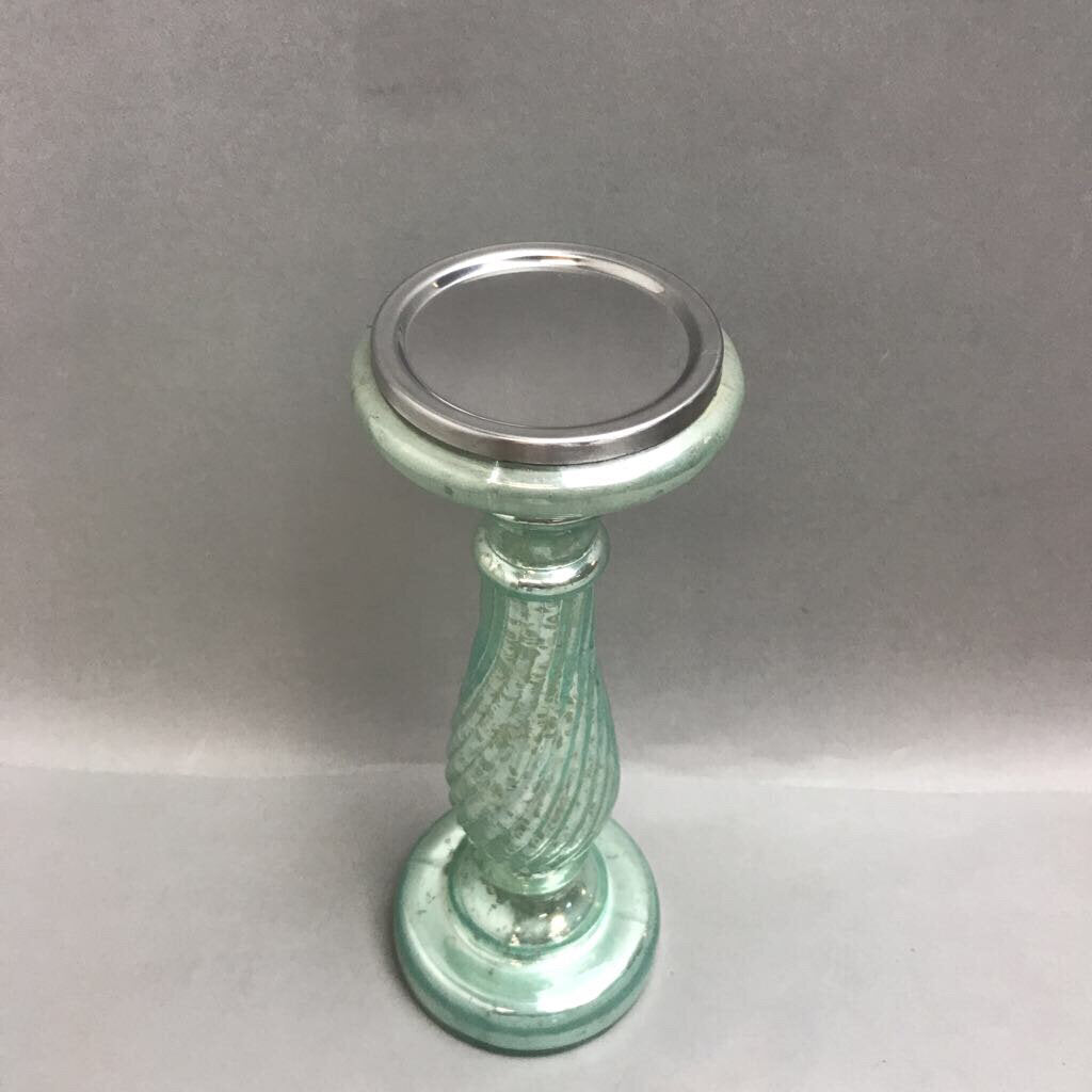 Green Mercury Glass Pillar Candle Holder Metal Top (12")