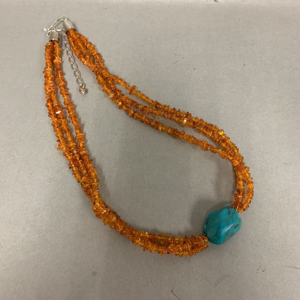 • Load image into Gallery viewer, Jay King Amber Chip Bead Layered Turquoise Focal Bead Necklace (23")