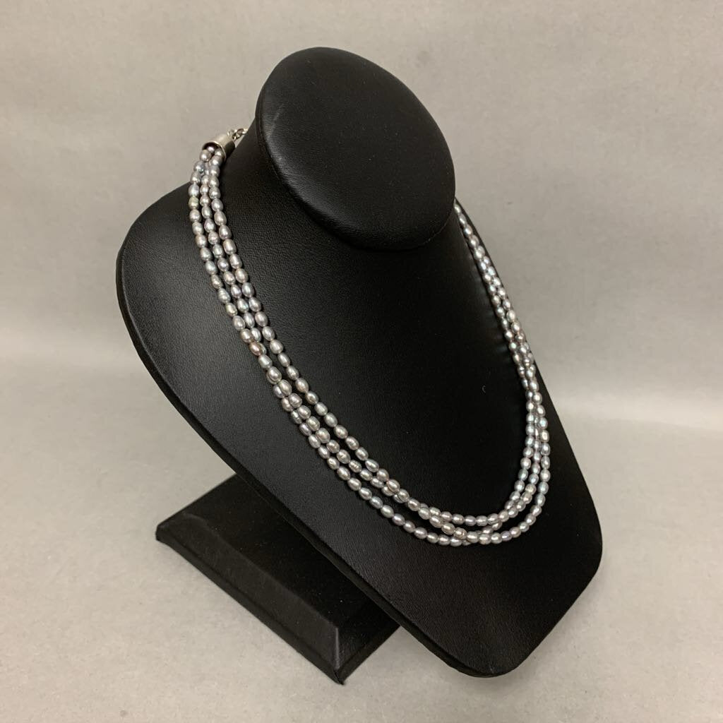 Jay King Light Gray Pearl Multi Strand Sterling Necklace 21")