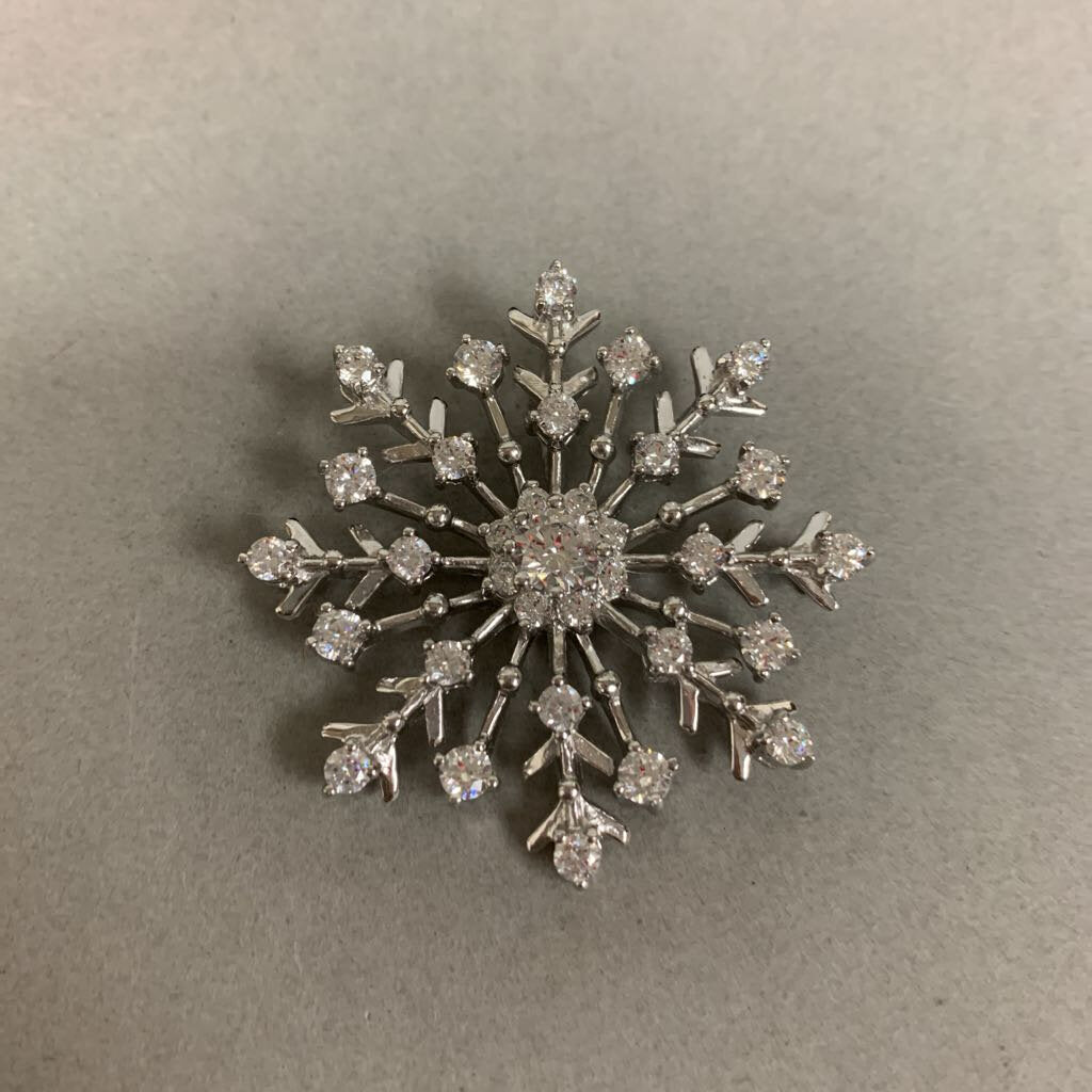 JCM Sterling Cubic Zirconia Snowflake Brooch Pin w/ Pendant Loop (2")