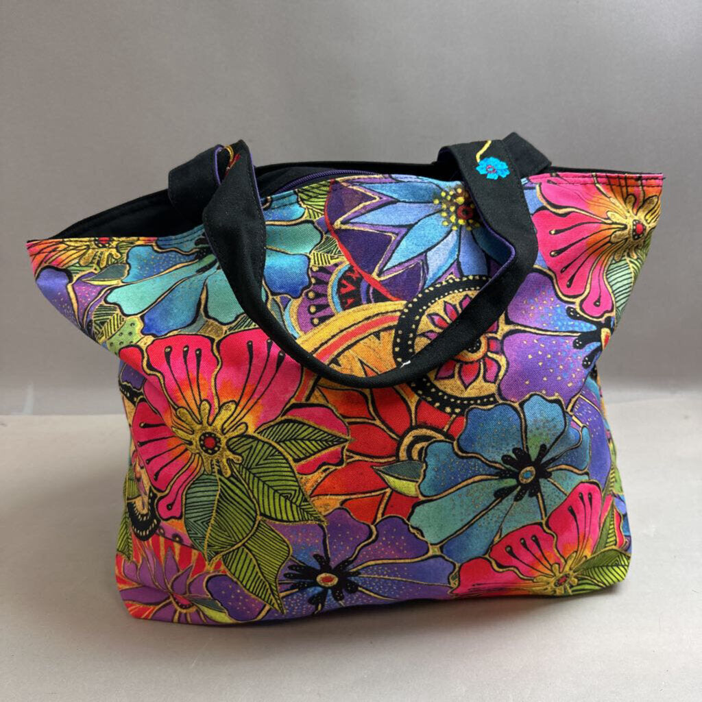 Laurel Burch Multicolor Floral Embroidered Sequin Detail Tote Purse NWT (15x20x6")