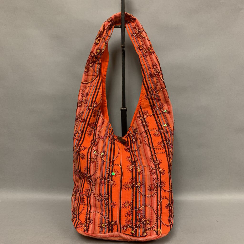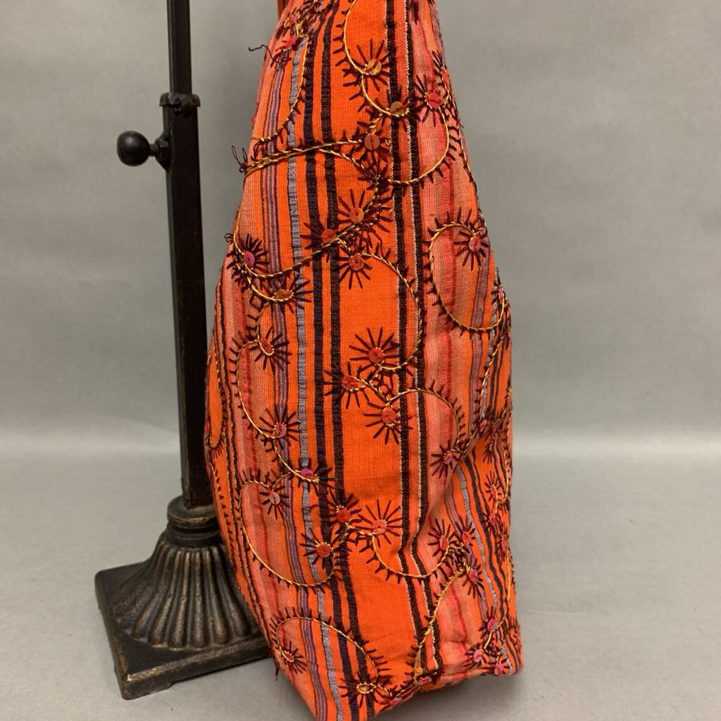 Orange Striped Sequined Sari Shoulder Bag Purse (11x11x4")
