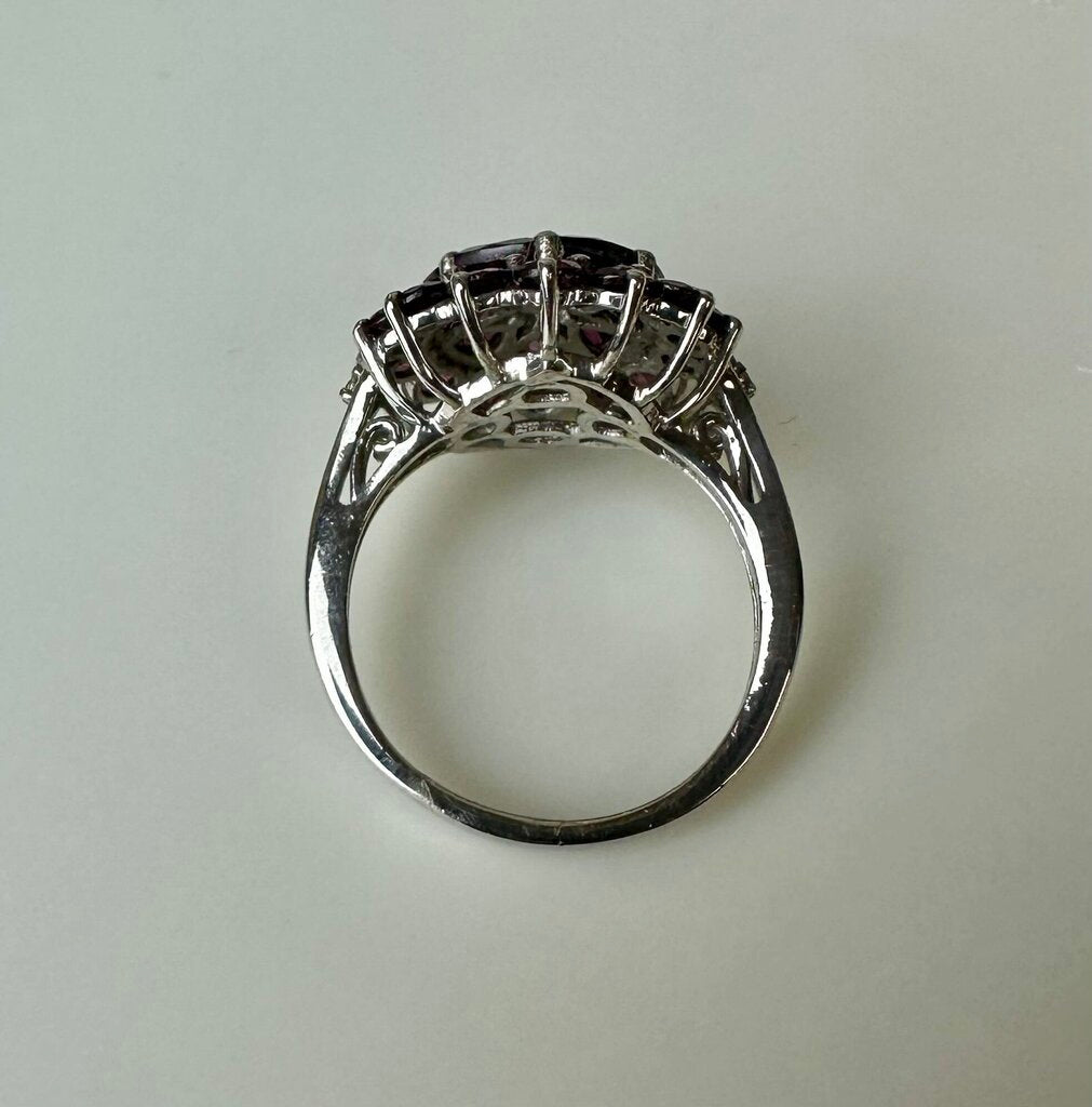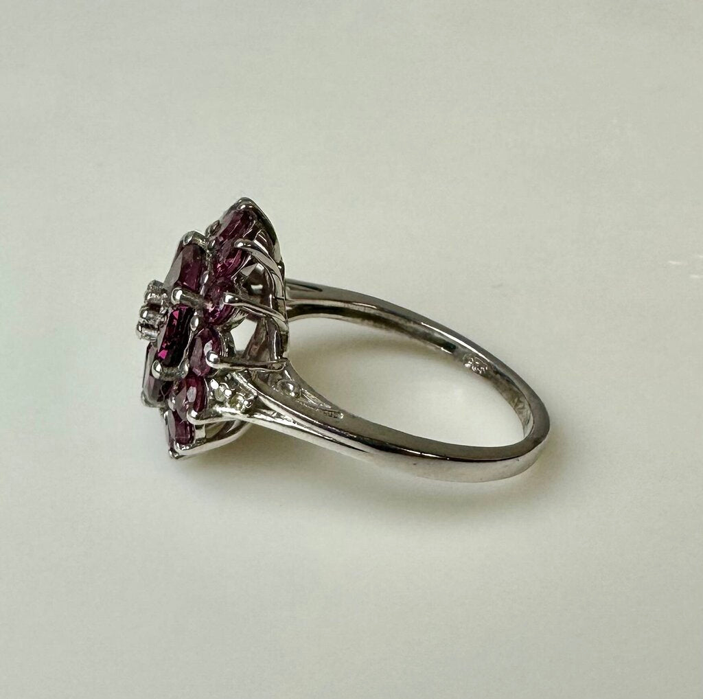 Sterling Pink Tourmaline Flower Cluster Ring sz 8.5