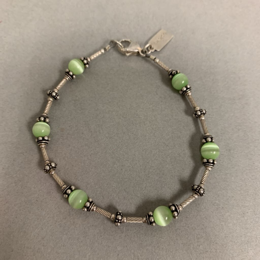 Uptown Sterling Green Cat's Eye Bead Bracelet (7.5")