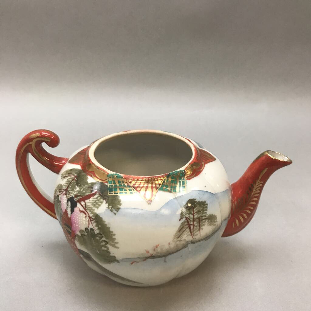 Vintage Asian Hand Painted Porcelain Tea Pot / Plant Pot (8" x 4")