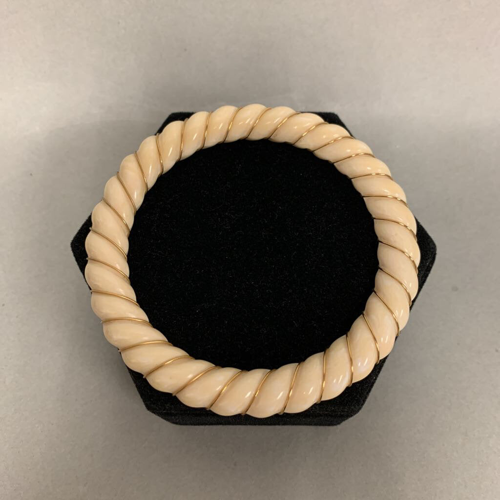 Vintage Ivory Resin 14K Gold Wire Wrapped Bangle Bracelet (2.5")