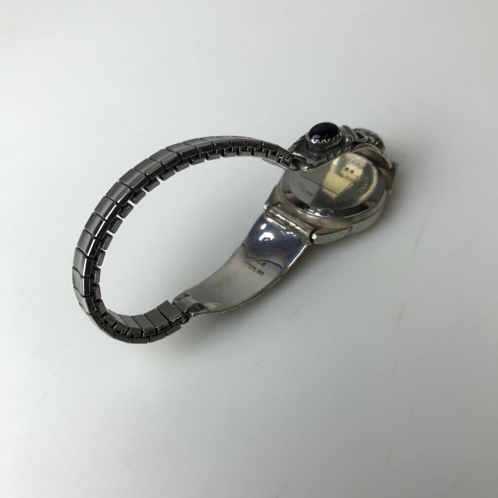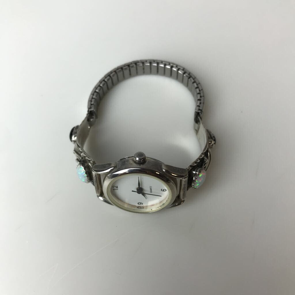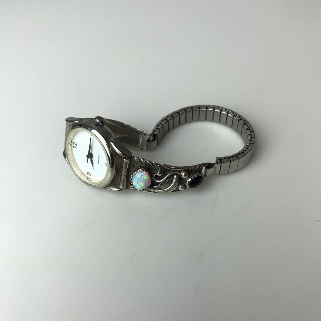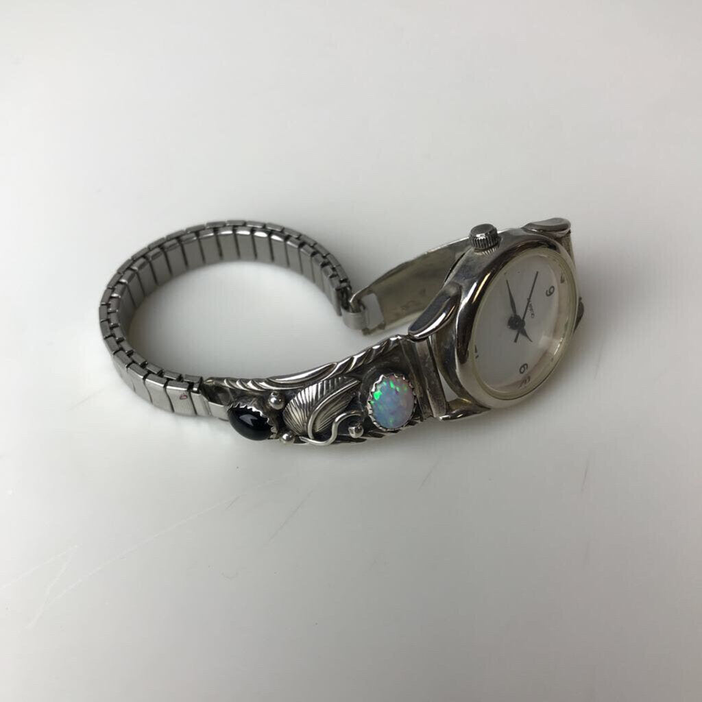 Vintage Watch w/ Native American Sterling Onyx Opal Watch Tips Signed RB (Running, New Battery)