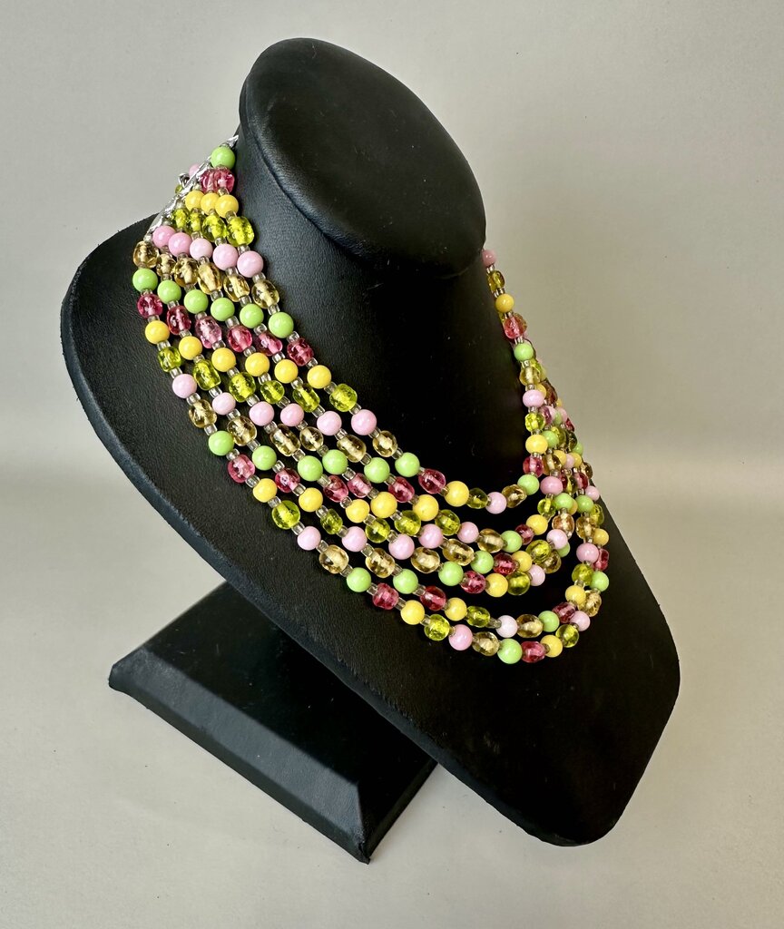 Vintage West German Pastel Glass Layered Bead Necklace (15")