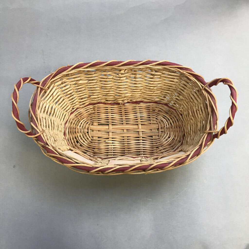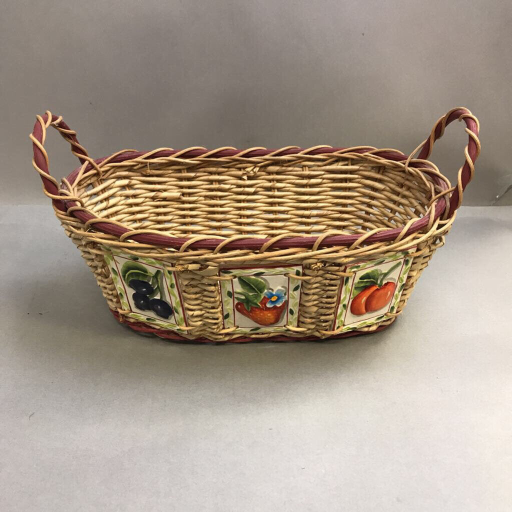 Vintage Wicker Basket With Ceramic Fruit Panels (15x7x9)