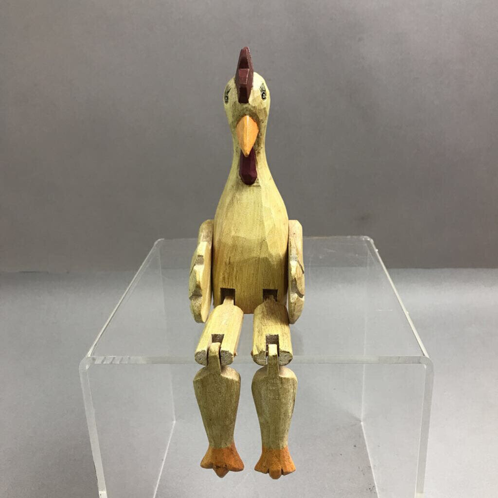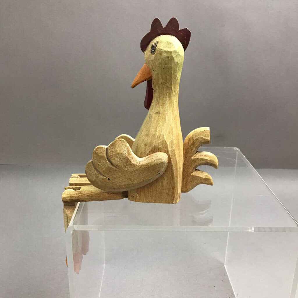 Wooden Jointed Chicken Decorative Shelf Sitter Carved Wood (12")